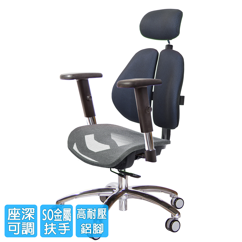 GXG 高雙背網座 工學椅(鋁腳/SO金屬扶手) 型號2806LUA5