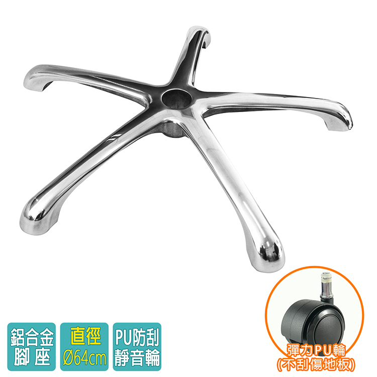 產品名稱:電腦椅專用 五星(爪)鋁合金腳座 (附輪子)