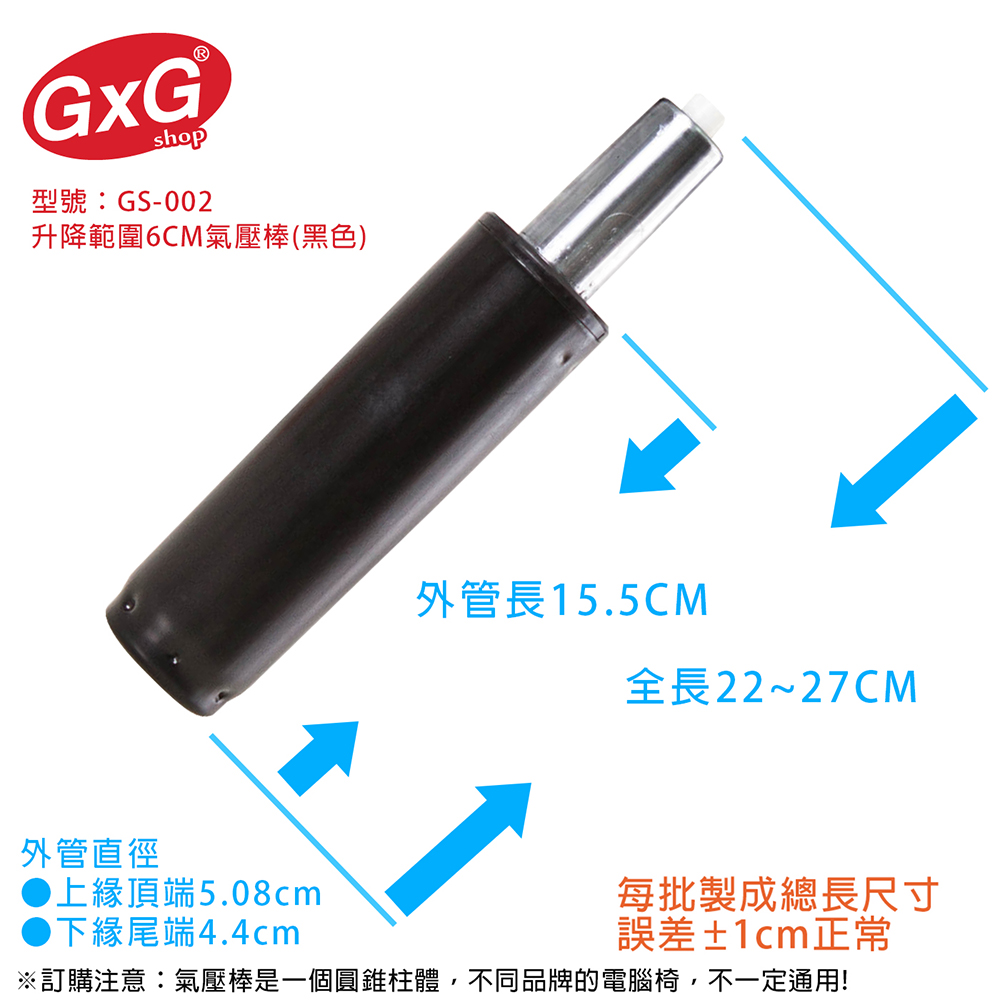 產品名稱:電腦椅氣壓棒 升降6CM (黑色-無縮管)
