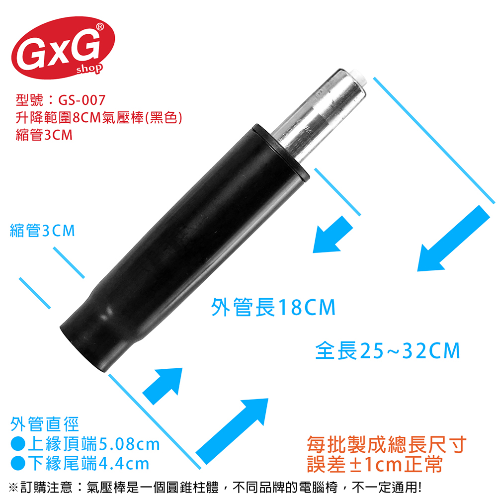 產品名稱:電腦椅氣壓棒 升降8CM 黑色