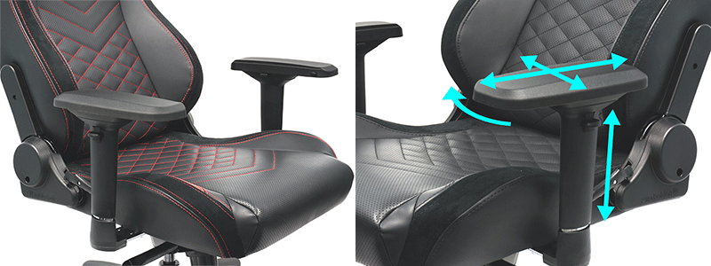 可調式4D扶手,柔軟聚氨酯材質的扶手可以上下,前後及左右調節,方便將手肘固定在最喜歡的位置。