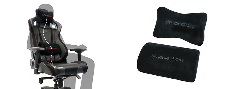 noblechairs皇家椅款,附頸枕以及腰枕,採用絲絨材質,不會變形且觸感舒服,頭枕後方防滑設計,不易滑落。兩者都是可拆卸的,可根據個人身形及喜好調整。