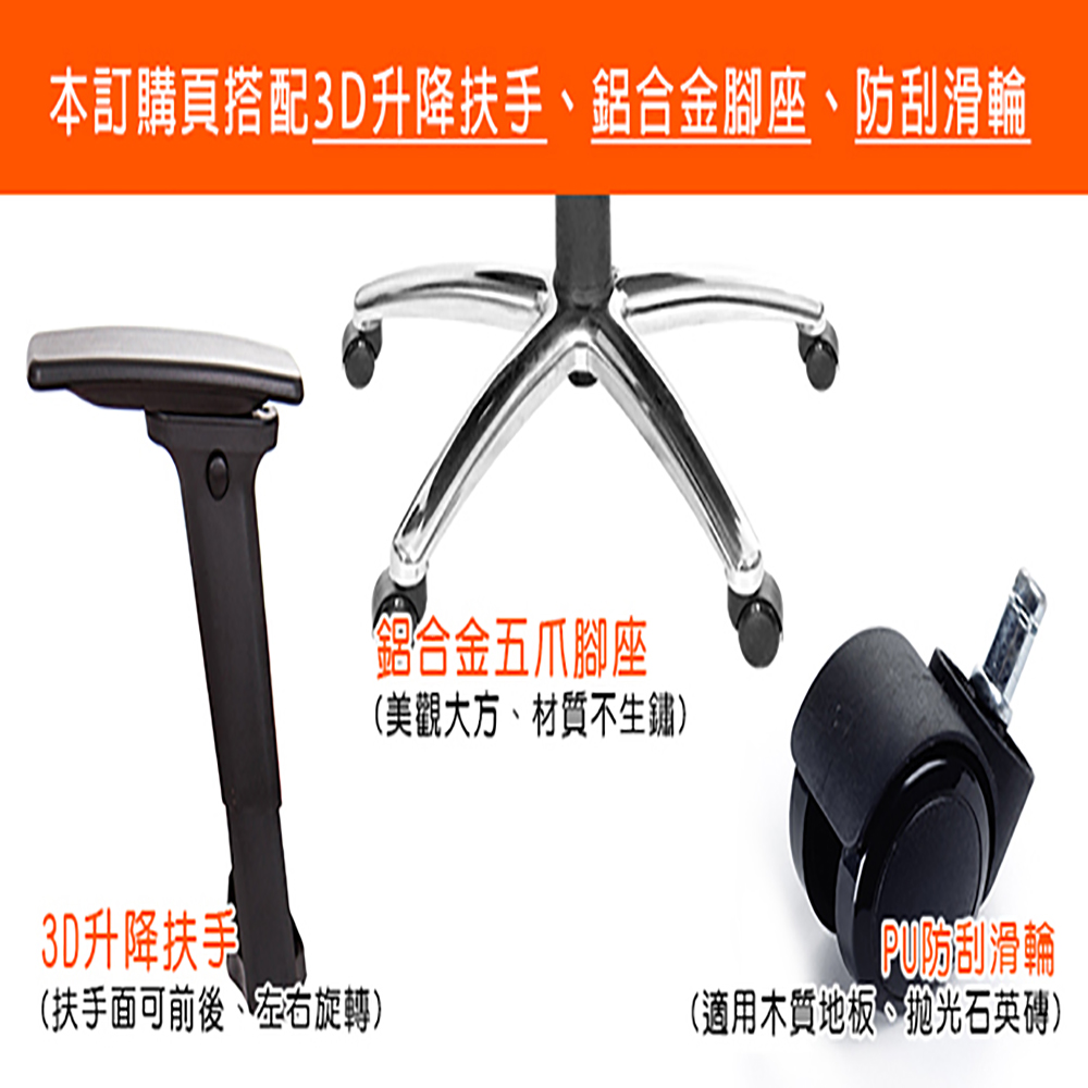 本訂購頁規格:3D升降塑鋼扶手、鋁合金腳座、PU防刮輪
