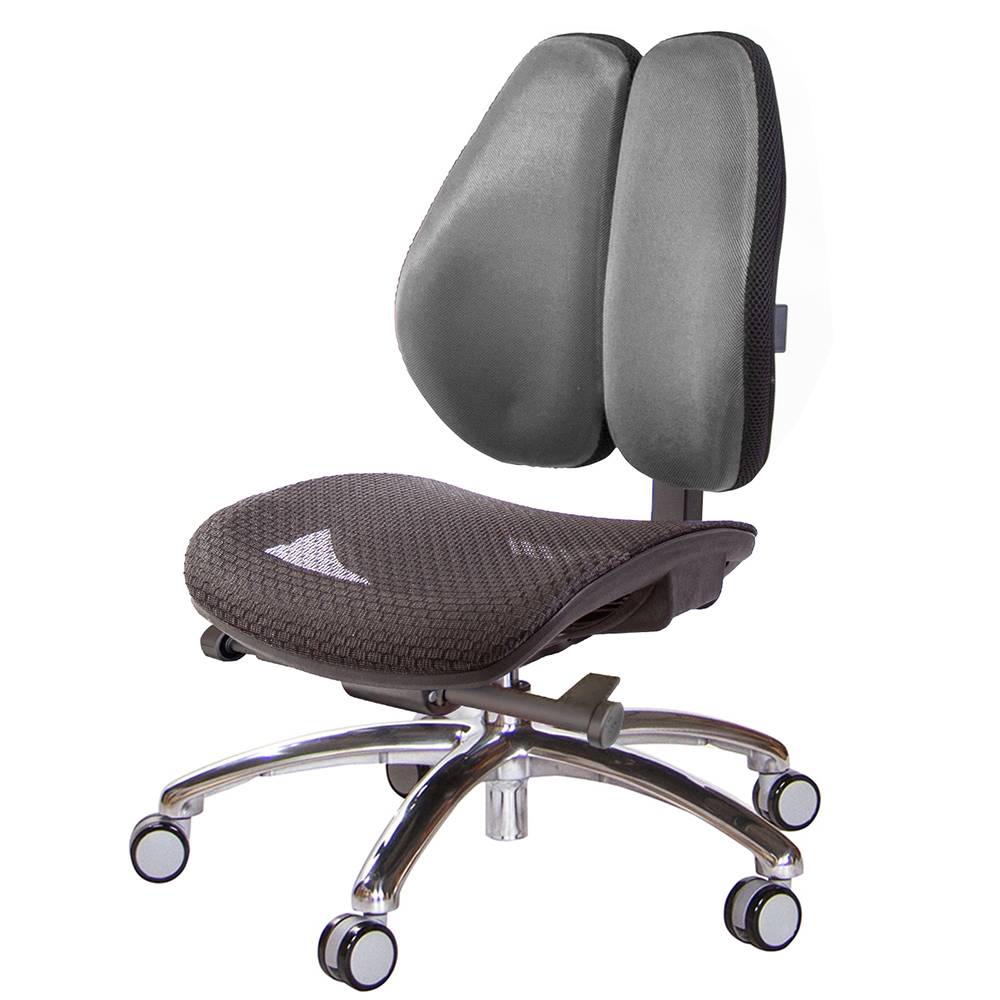 TW-2803低背款雙背椅,本款使用中型灰網面座墊,適合身高160~185CM使用者,椅背採用人體工學設計,造型看似烏魚子、或是像兩個人體肺的型狀,這樣的設計,是讓我們在乘坐後靠時,能更貼合我們背部,緩和脊椎的重力,降低尾椎壓力,給長時間工作者一張,聰明、會改善坐姿習慣的智慧椅。