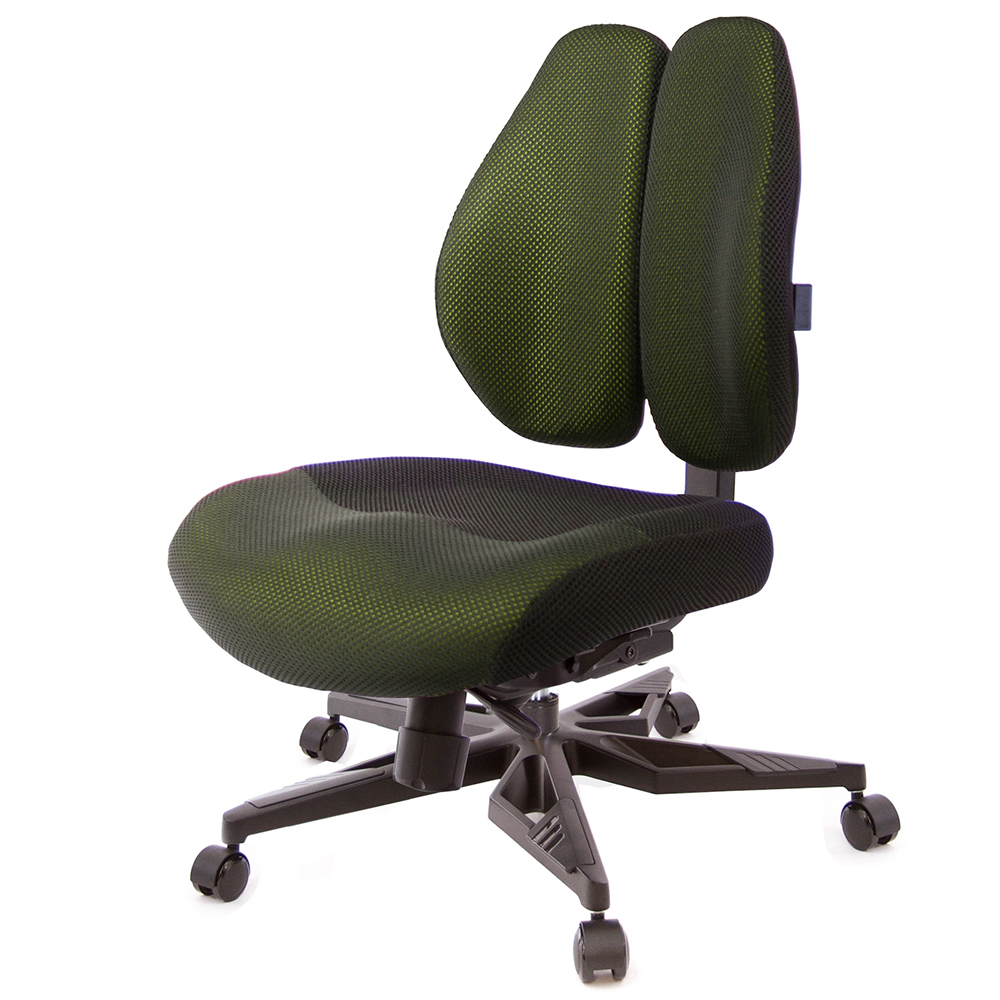 一般的電腦椅,實際上『椅背』大都不能支撐人體腰椎,緣自於人體本身的構造,人體的肩胛骨兩旁延伸至肩膀,其雙肩的壓力,會集中到腰椎中心處形成一個『倒三角的點』,如同一個箭頭向下將壓力壓迫到腰椎,無法讓脊椎肌肉正常釋放重力。 GXG Furniture開發出新式『智慧雙背椅』,提倡健康座、舒適生活,當您坐在一般椅子上,腰椎基本所承受的壓力,是人體自然站立時的140%,而使用『雙背智慧椅』,如同多了一雙手,完整托住您的背部,明顯比一般椅子減輕百分之五十的腰椎壓力,讓腰椎壓力降至75%,改善您長久以來的困擾怎麼坐,都痠痛的問題,能讓您舒適度明顯提升