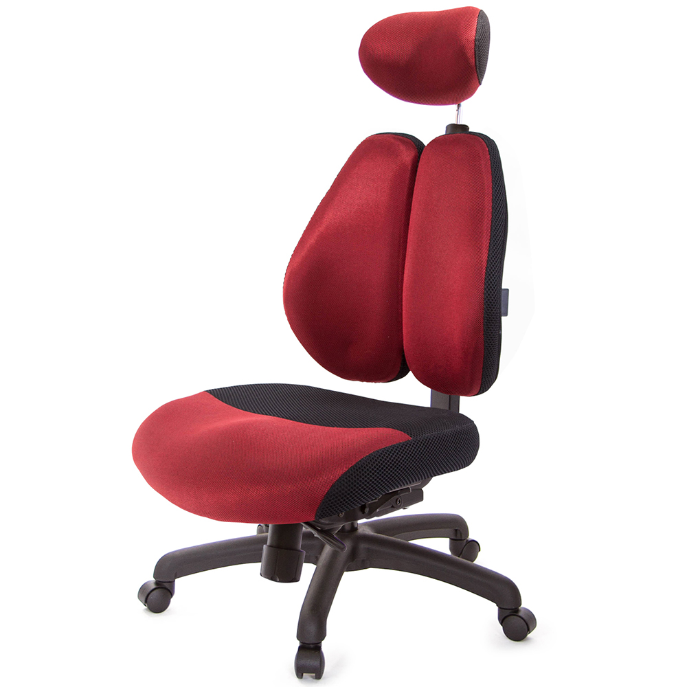 一般的電腦椅,實際上『椅背』大都不能支撐人體腰椎,緣自於人體本身的構造,人體的肩胛骨兩旁延伸至肩膀,其雙肩的壓力,會集中到腰椎中心處形成一個『倒三角的點』,如同一個箭頭向下將壓力壓迫到腰椎,無法讓脊椎肌肉正常釋放重力。 GXG Furniture開發出新式『智慧雙背椅』,提倡健康座、舒適生活,當您坐在一般椅子上,腰椎基本所承受的壓力,是人體自然站立時的140%,而使用『雙背智慧椅』,如同多了一雙手,完整托住您的背部,明顯比一般椅子減輕百分之五十的腰椎壓力,讓腰椎壓力降至75%,改善您長久以來的困擾怎麼坐,都痠痛的問題,能讓您舒適度明顯提升