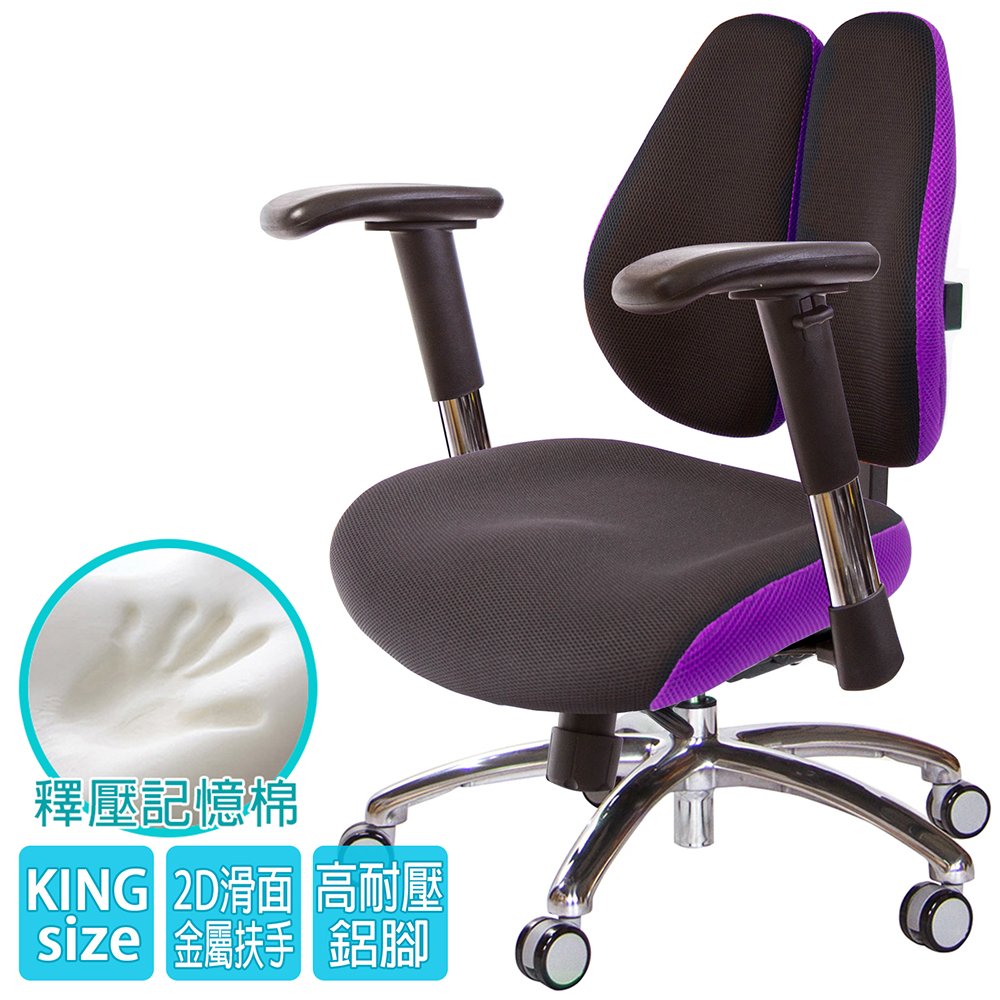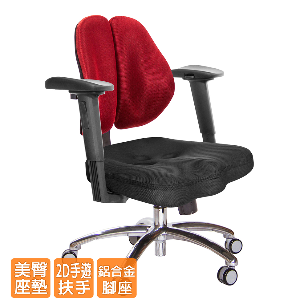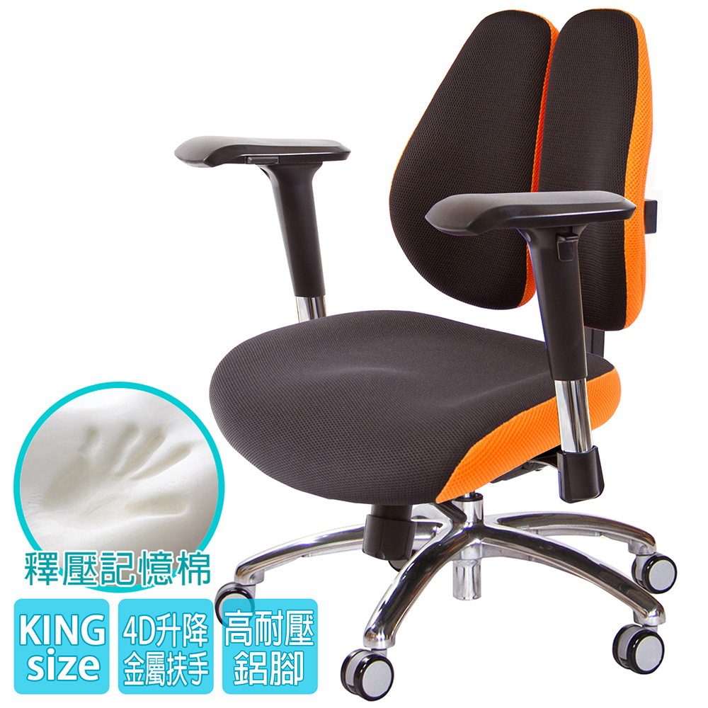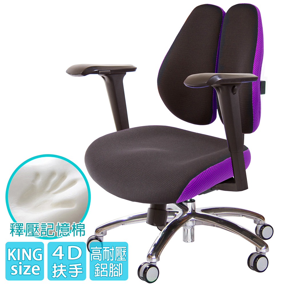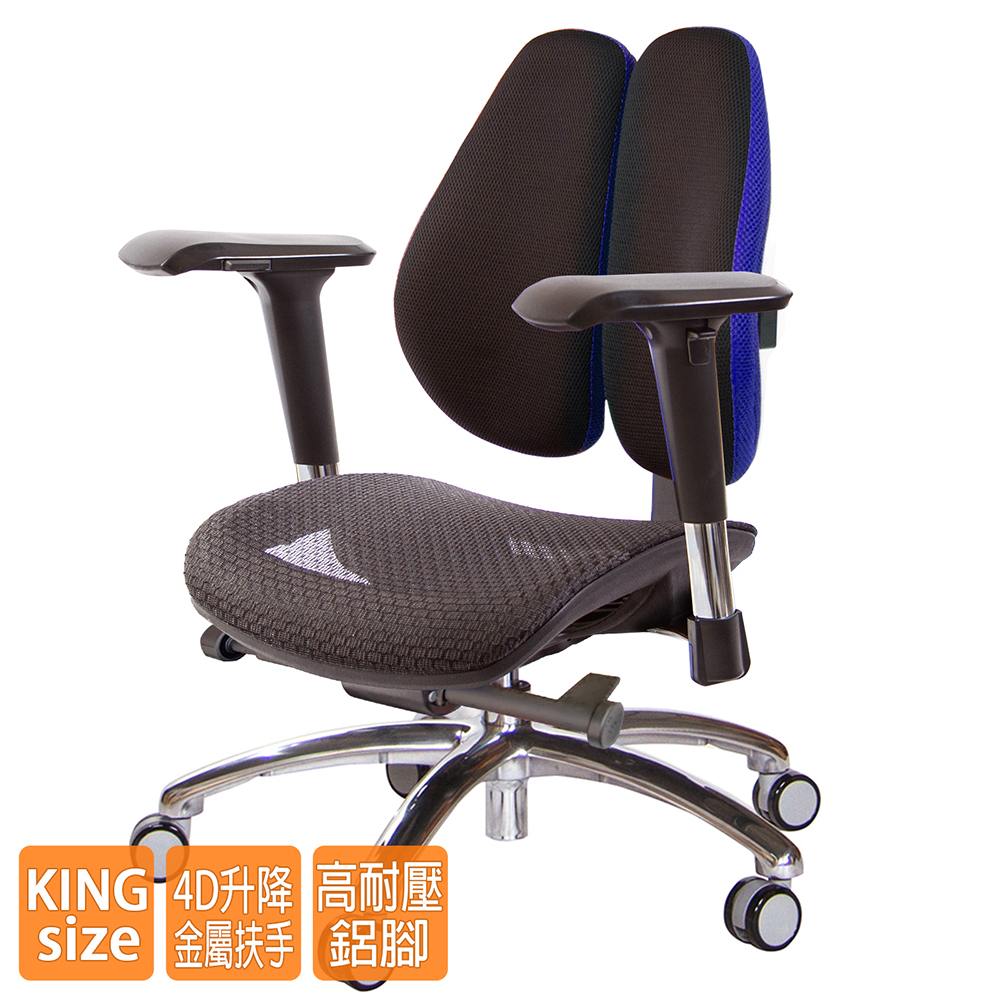 人體工學雙背設計,改善長時間座在椅子上,覺得腰部貼合度不足,有懸空或不夠沉穩的感覺,改良式的雙背背墊,除了完整包覆性外,更提供了『左右彈性』、『上下貼合』、『彈力緩衝』等特性,並有多國國際結構專利認證(台灣、德國、日本、美國、中國等),原廠專利、技術100% Made in Taiwan台灣製造。