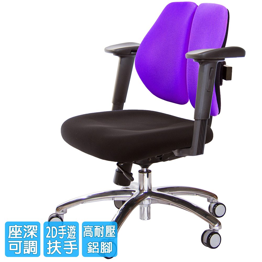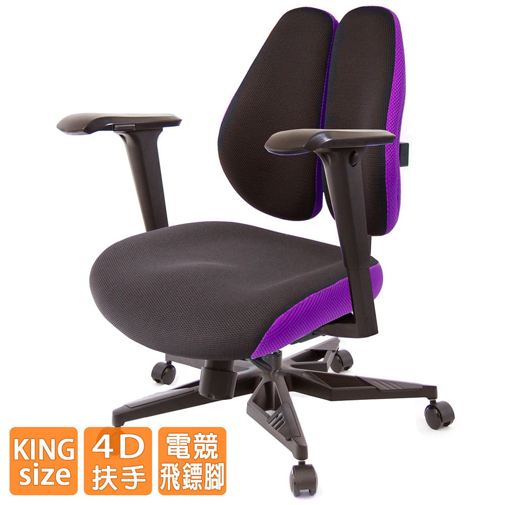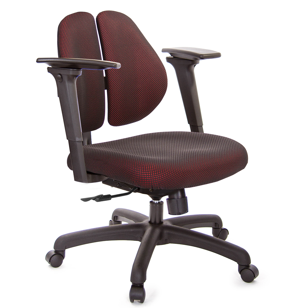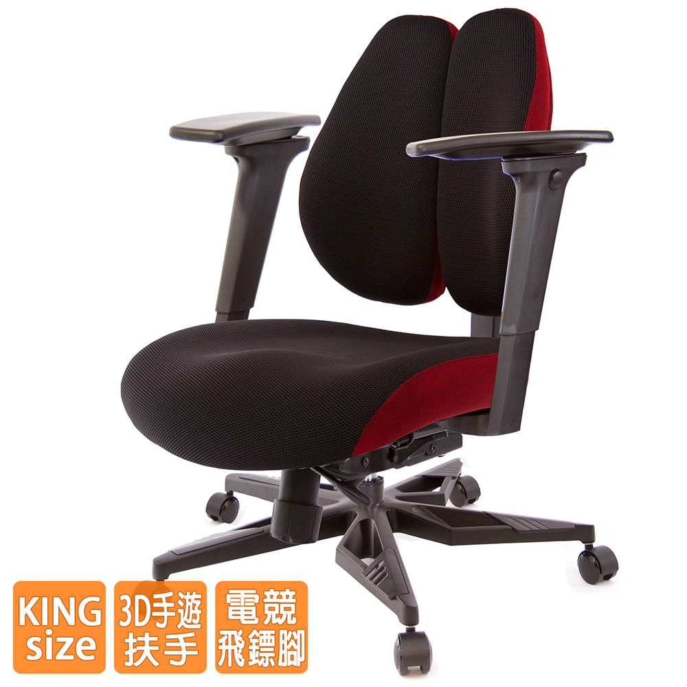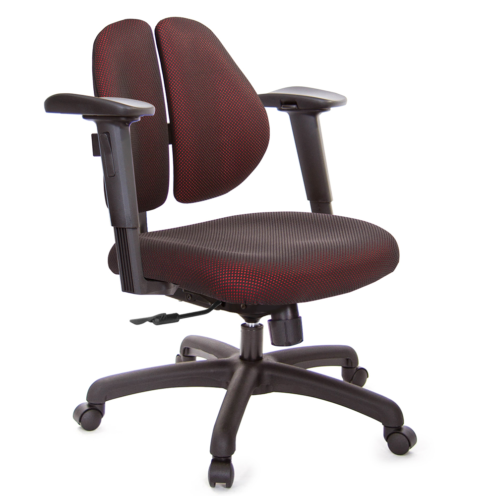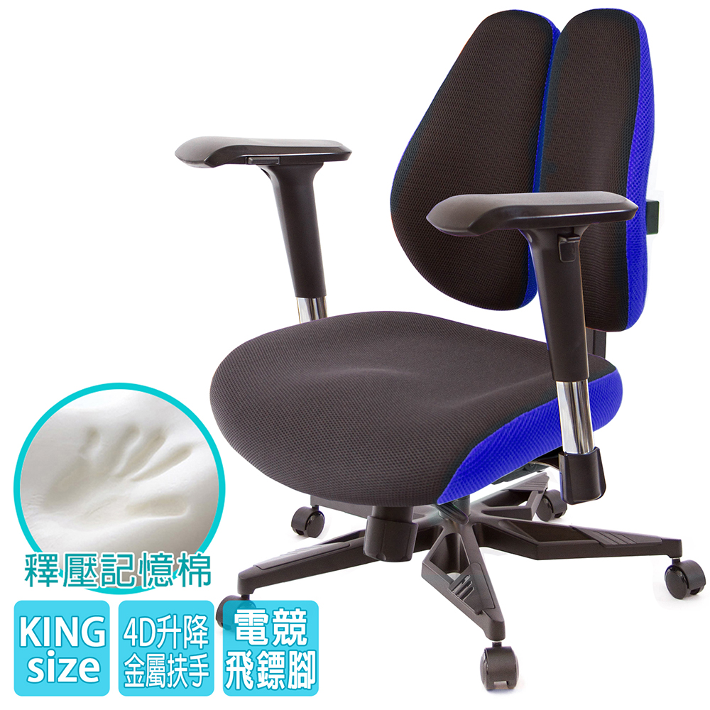 人體工學雙背設計,改善長時間座在椅子上,覺得腰部貼合度不足,有懸空或不夠沉穩的感覺,改良式的雙背背墊,除了完整包覆性外,更提供了『左右彈性』、『上下貼合』、『彈力緩衝』等特性,並有多國國際結構專利認證(台灣、德國、日本、美國、中國等),原廠專利、技術100% Made in Taiwan台灣製造。