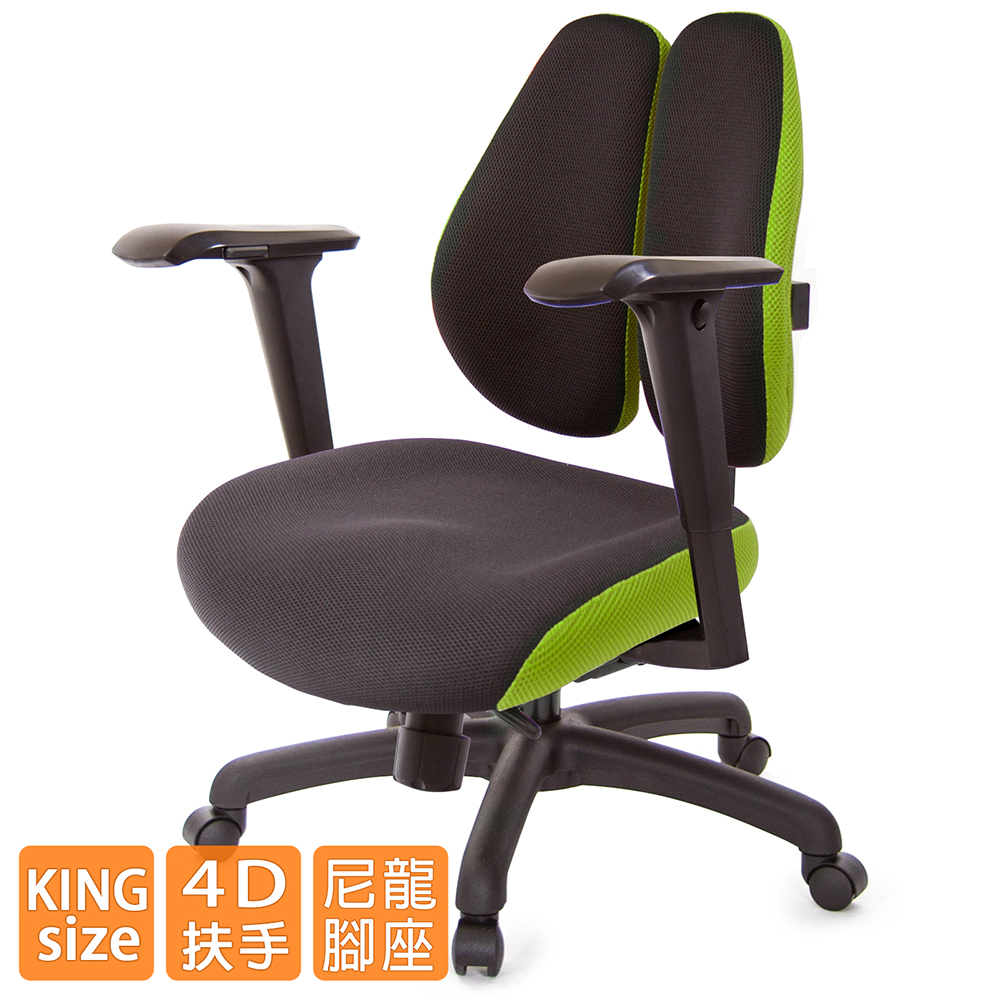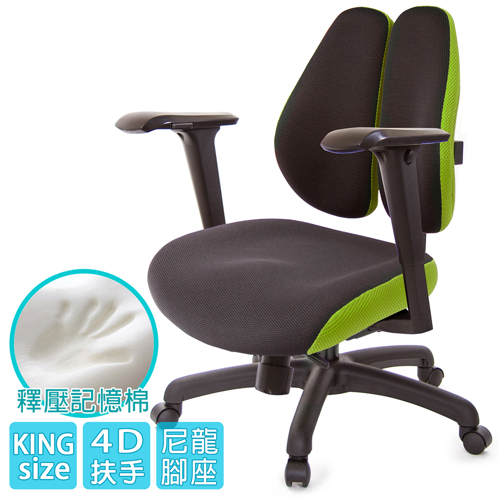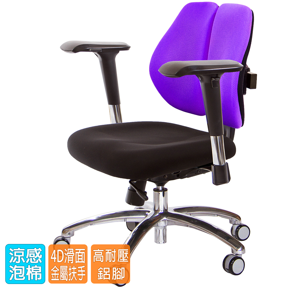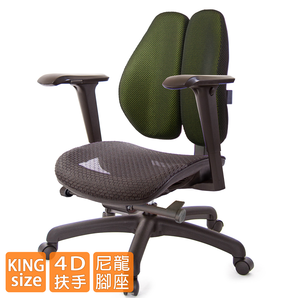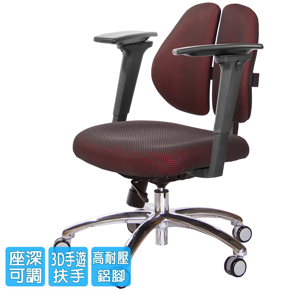 人體工學雙背設計,改善長時間座在椅子上,覺得腰部貼合度不足,有懸空或不夠沉穩的感覺,改良式的雙背背墊,除了完整包覆性外,更提供了『左右彈性』、『上下貼合』、『彈力緩衝』等特性,並有多國國際結構專利認證(台灣、德國、日本、美國、中國等),原廠專利、技術100% Made in Taiwan台灣製造。