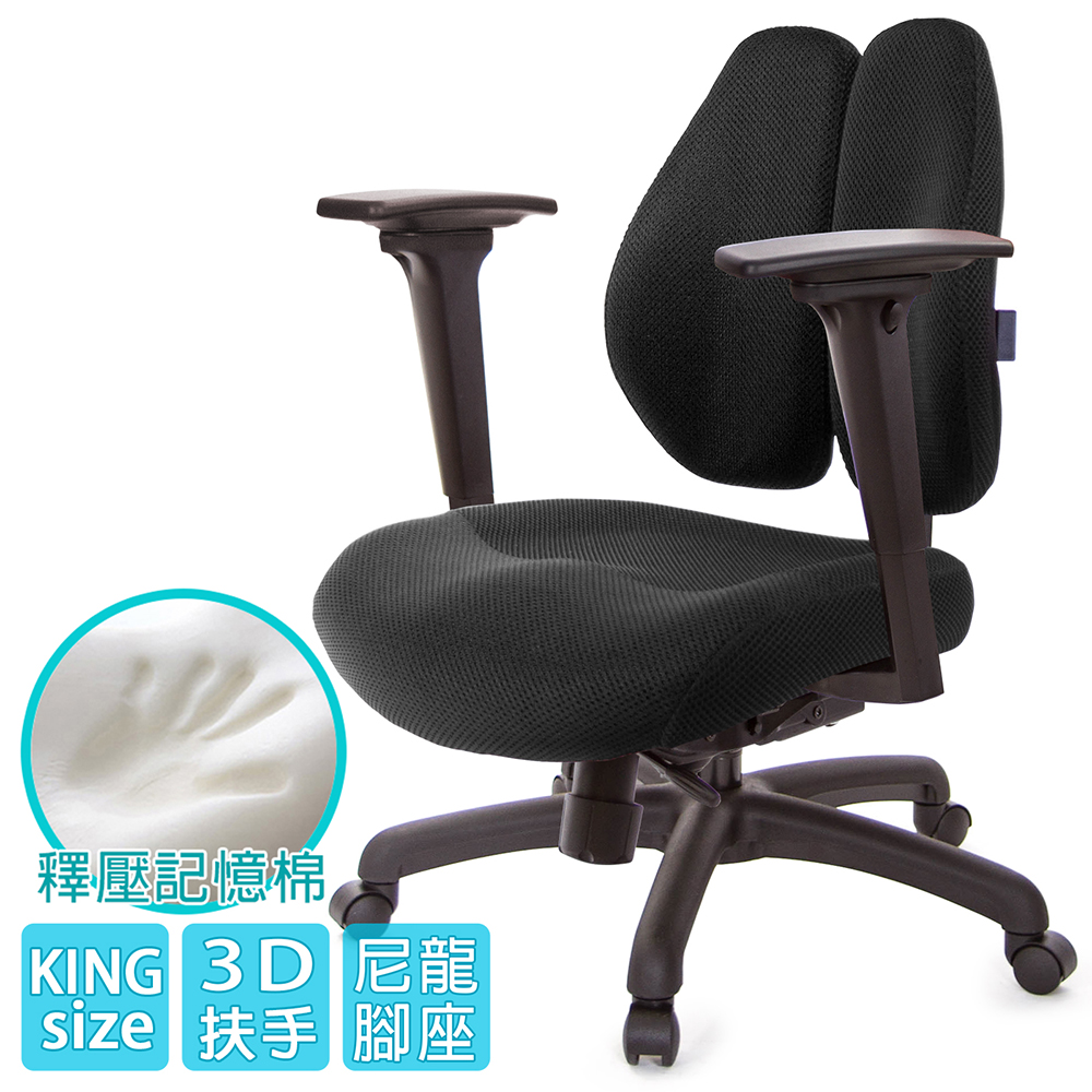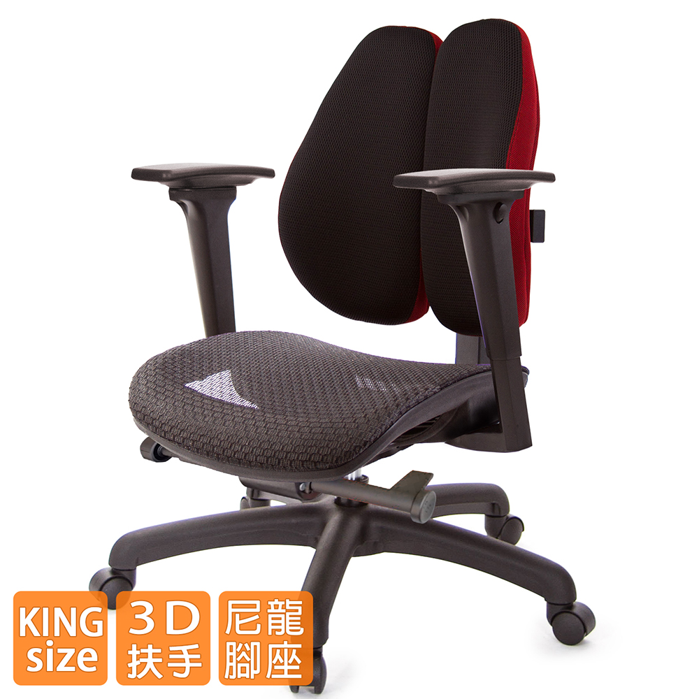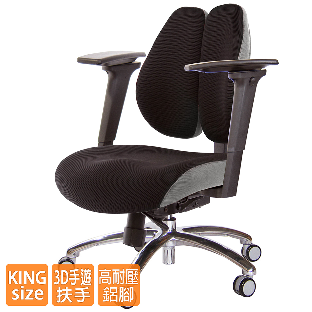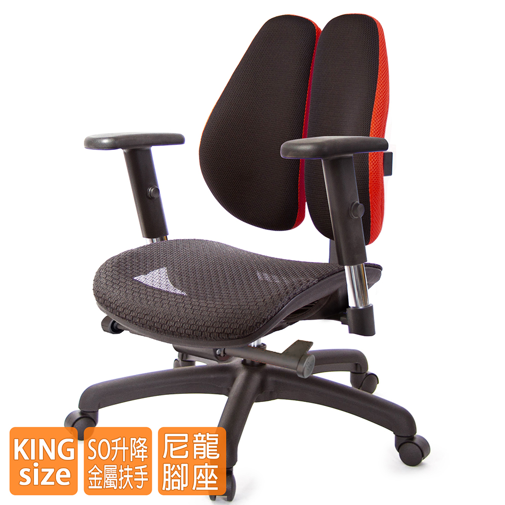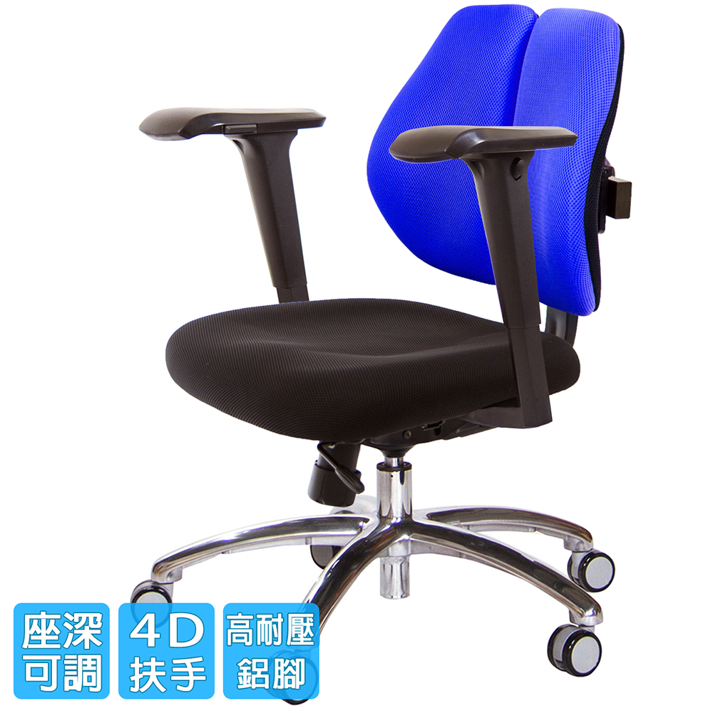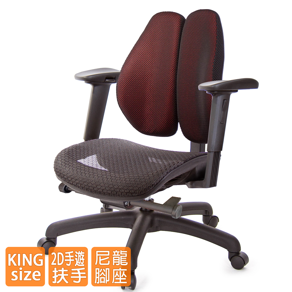 人體工學雙背設計,改善長時間座在椅子上,覺得腰部貼合度不足,有懸空或不夠沉穩的感覺,改良式的雙背背墊,除了完整包覆性外,更提供了『左右彈性』、『上下貼合』、『彈力緩衝』等特性,並有多國國際結構專利認證(台灣、德國、日本、美國、中國等),原廠專利、技術100% Made in Taiwan台灣製造。