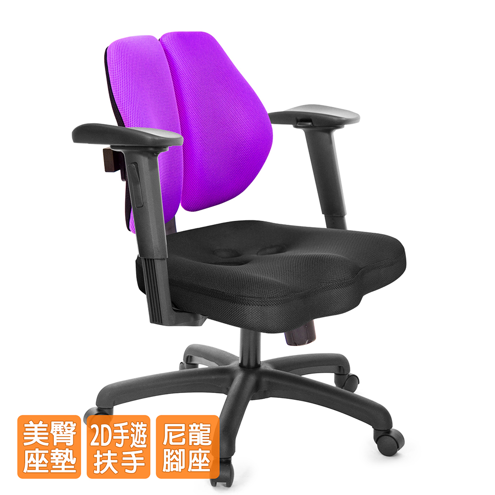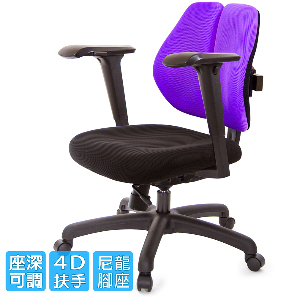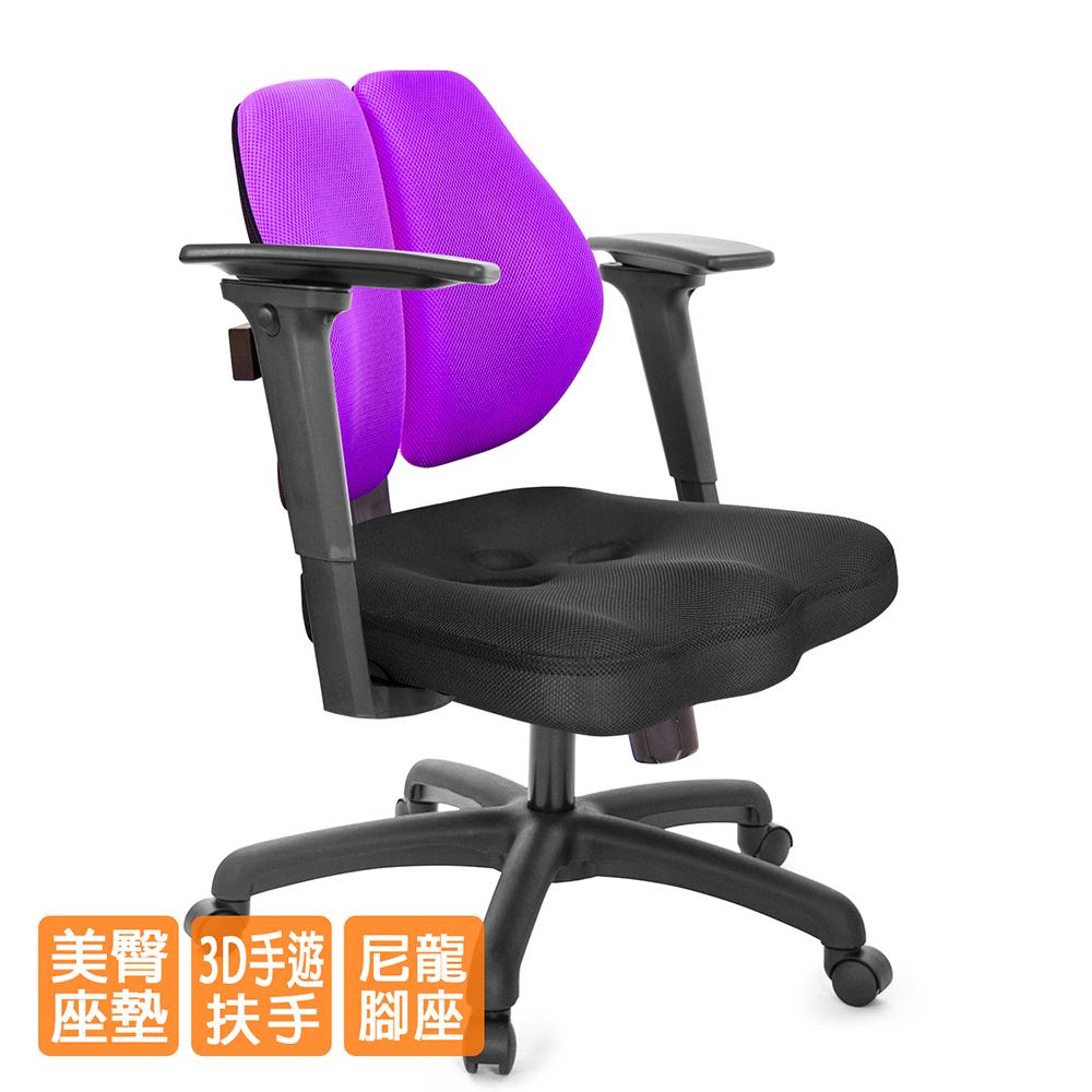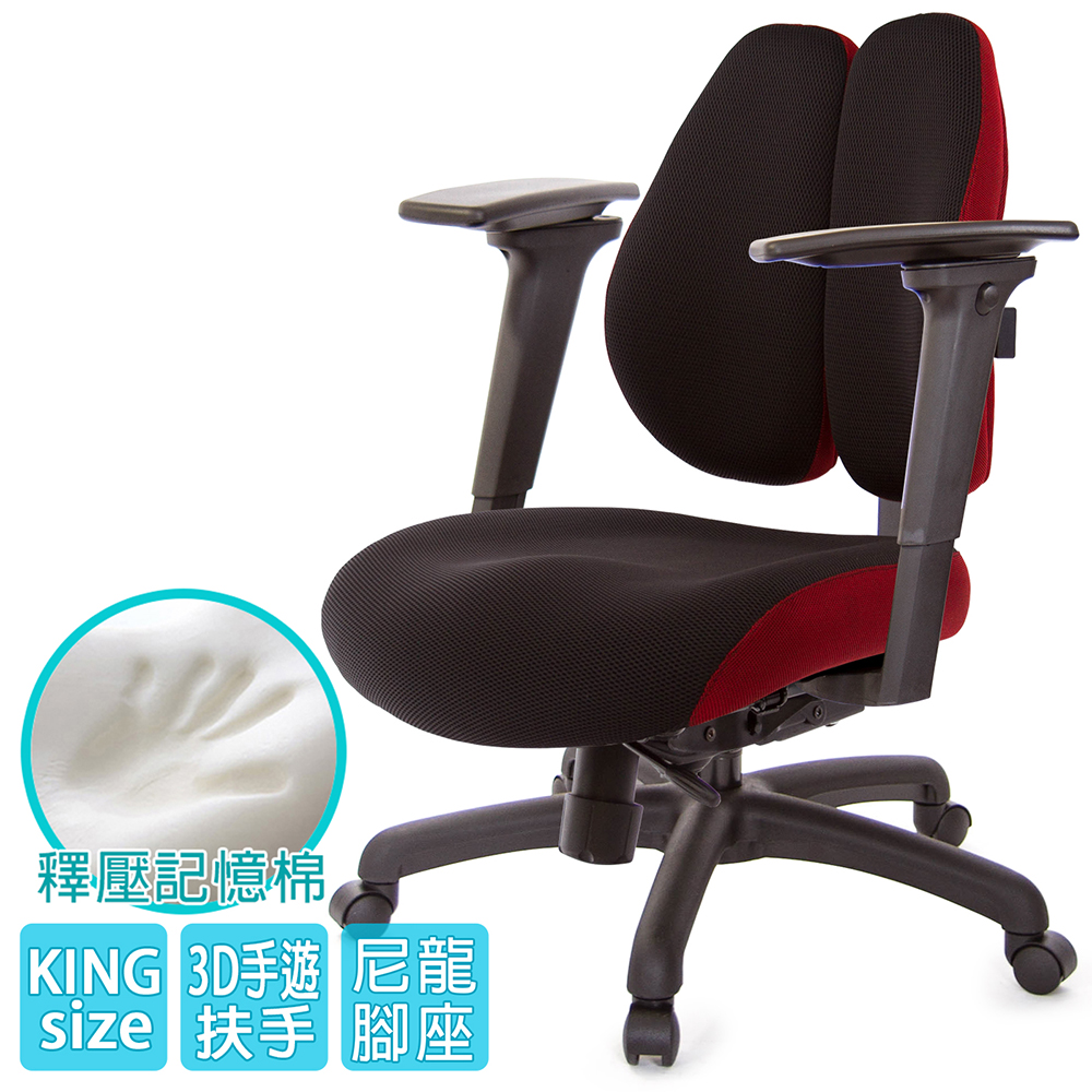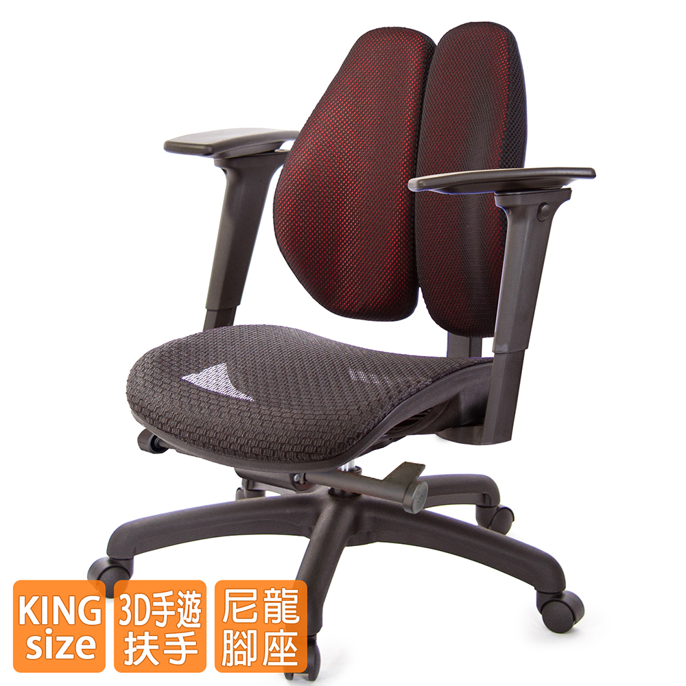 人體工學雙背設計,改善長時間座在椅子上,覺得腰部貼合度不足,有懸空或不夠沉穩的感覺,改良式的雙背背墊,除了完整包覆性外,更提供了『左右彈性』、『上下貼合』、『彈力緩衝』等特性,並有多國國際結構專利認證(台灣、德國、日本、美國、中國等),原廠專利、技術100% Made in Taiwan台灣製造。