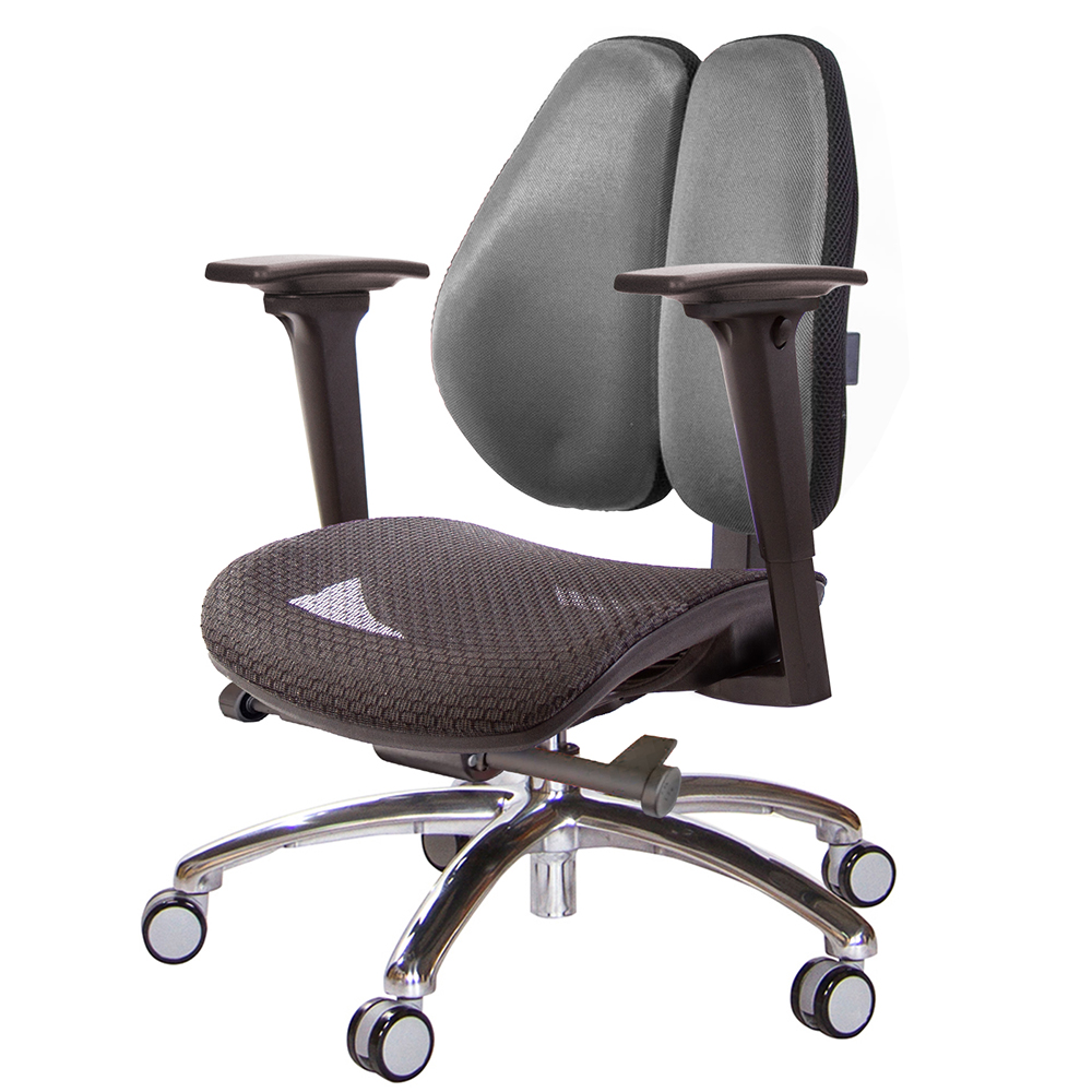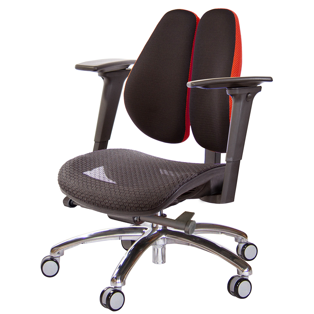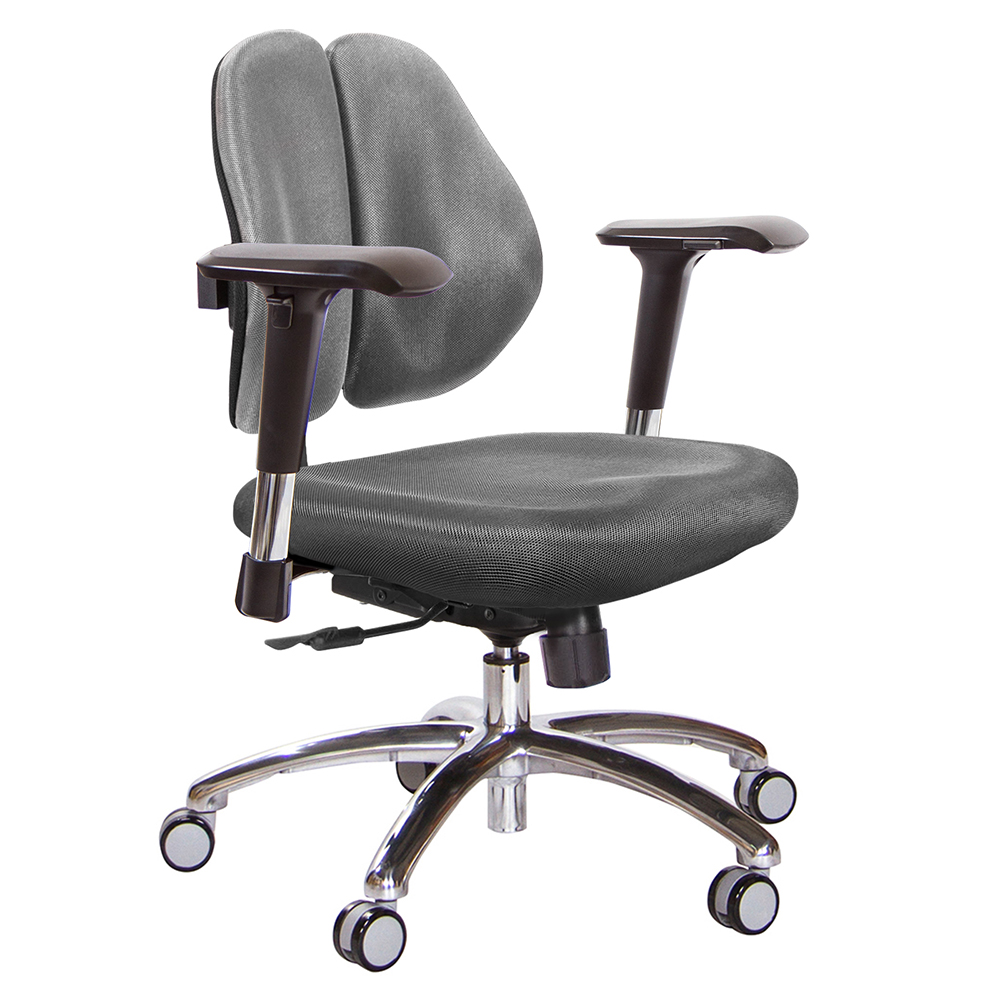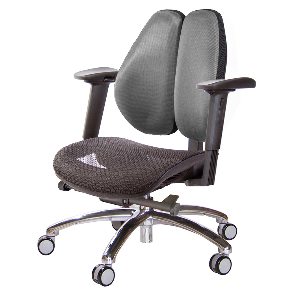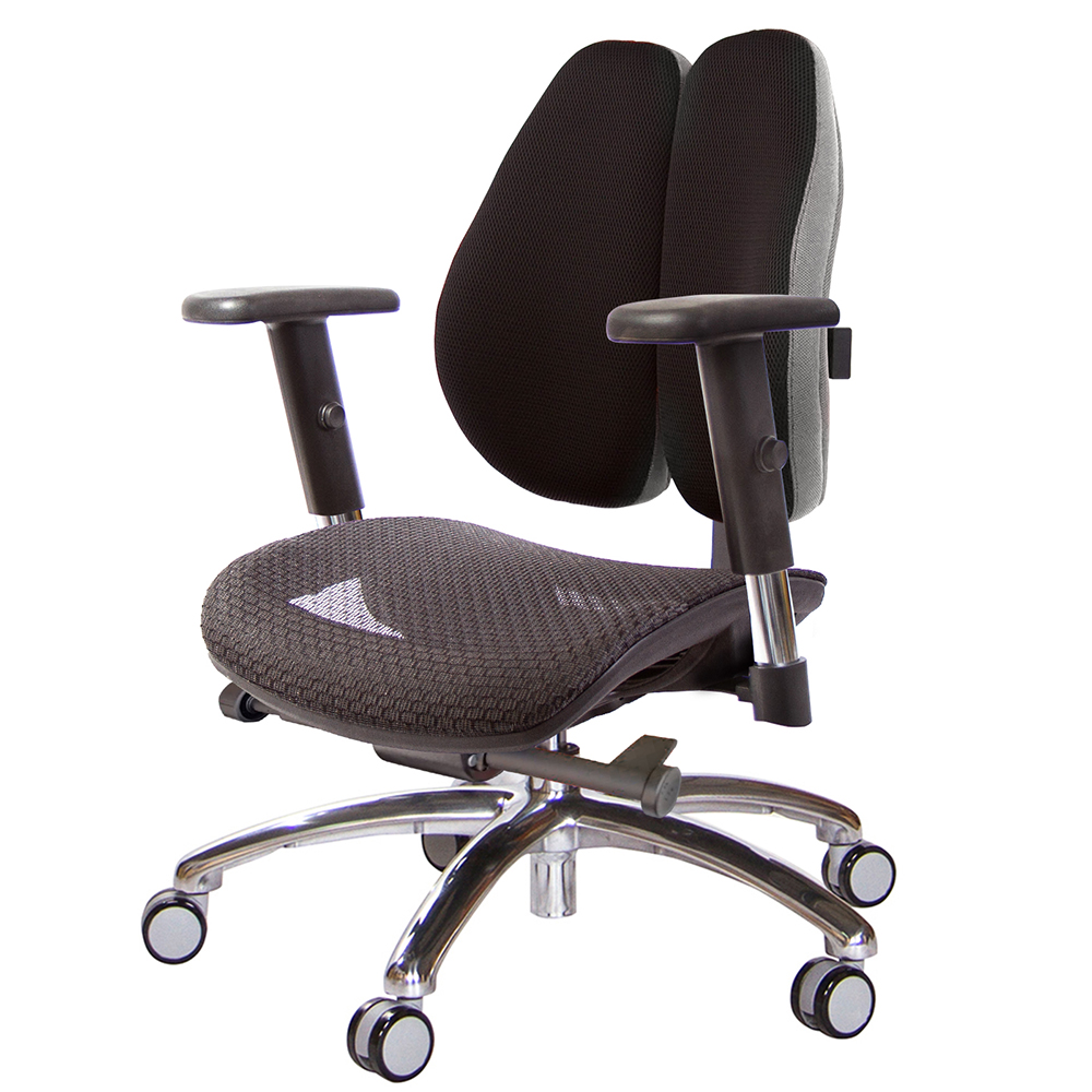 TW-2805低背款雙背椅,本款使用中型灰網面座墊,適合身高160~185CM使用者,椅背採用人體工學設計,造型看似烏魚子、或是像兩個人體肺的型狀,這樣的設計,是讓我們在乘坐後靠時,能更貼合我們背部,緩和脊椎的重力,降低尾椎壓力,給長時間工作者一張,聰明、會改善坐姿習慣的智慧椅。