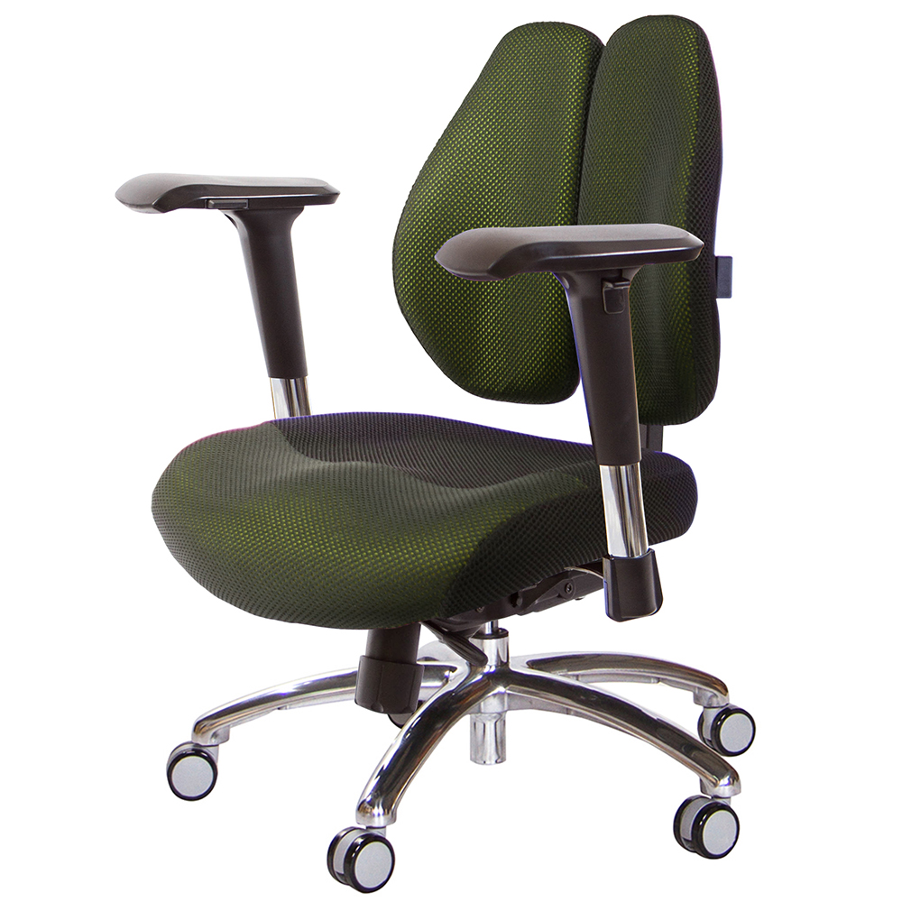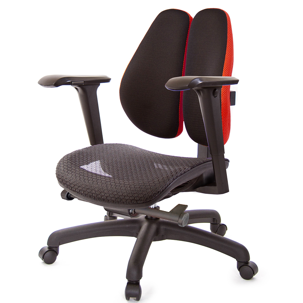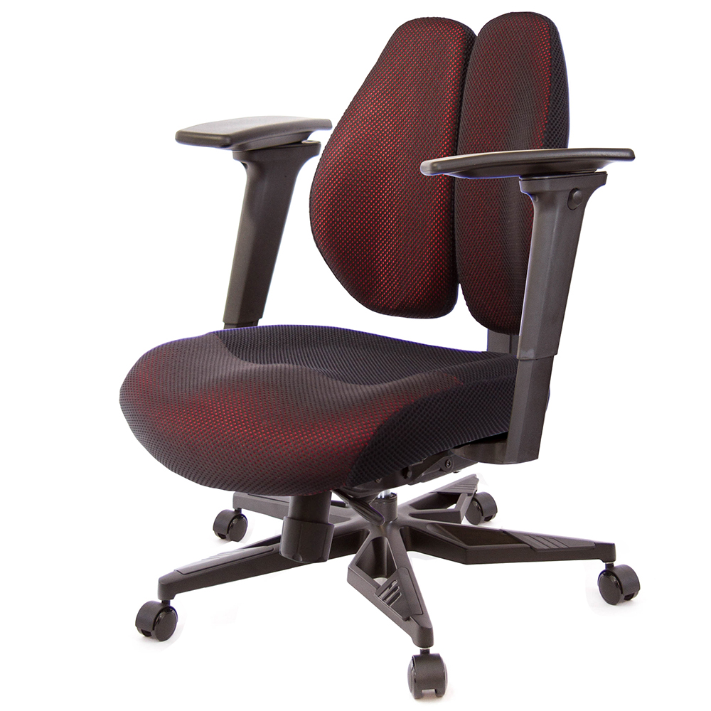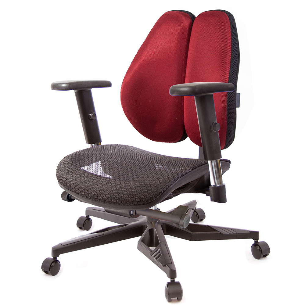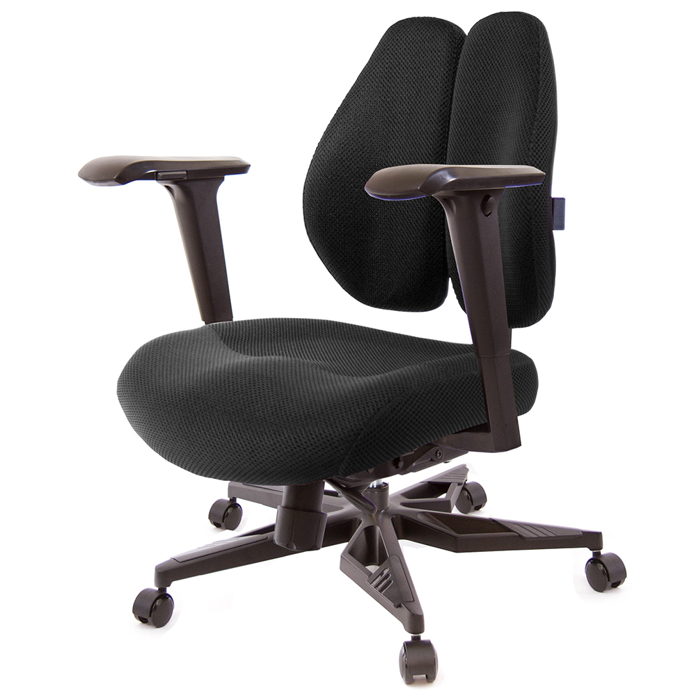 一般的電腦椅,實際上『椅背』大都不能支撐人體腰椎,緣自於人體本身的構造,人體的肩胛骨兩旁延伸至肩膀,其雙肩的壓力,會集中到腰椎中心處形成一個『倒三角的點』,如同一個箭頭向下將壓力壓迫到腰椎,無法讓脊椎肌肉正常釋放重力。 GXG Furniture開發出新式『智慧雙背椅』,提倡健康座、舒適生活,當您坐在一般椅子上,腰椎基本所承受的壓力,是人體自然站立時的140%,而使用『雙背智慧椅』,如同多了一雙手,完整托住您的背部,明顯比一般椅子減輕百分之五十的腰椎壓力,讓腰椎壓力降至75%,改善您長久以來的困擾怎麼坐,都痠痛的問題,能讓您舒適度明顯提升