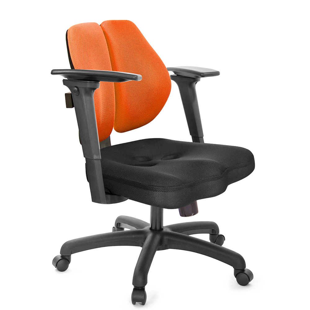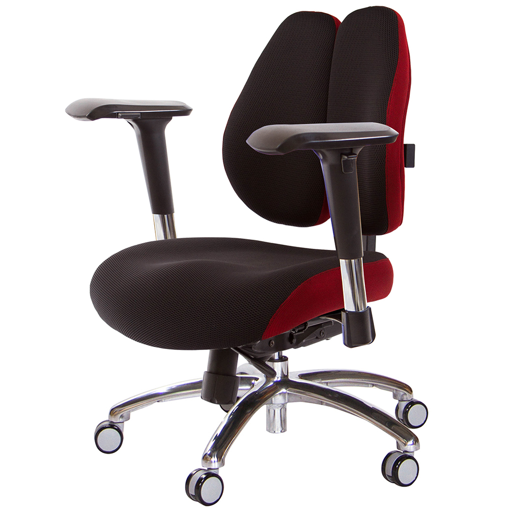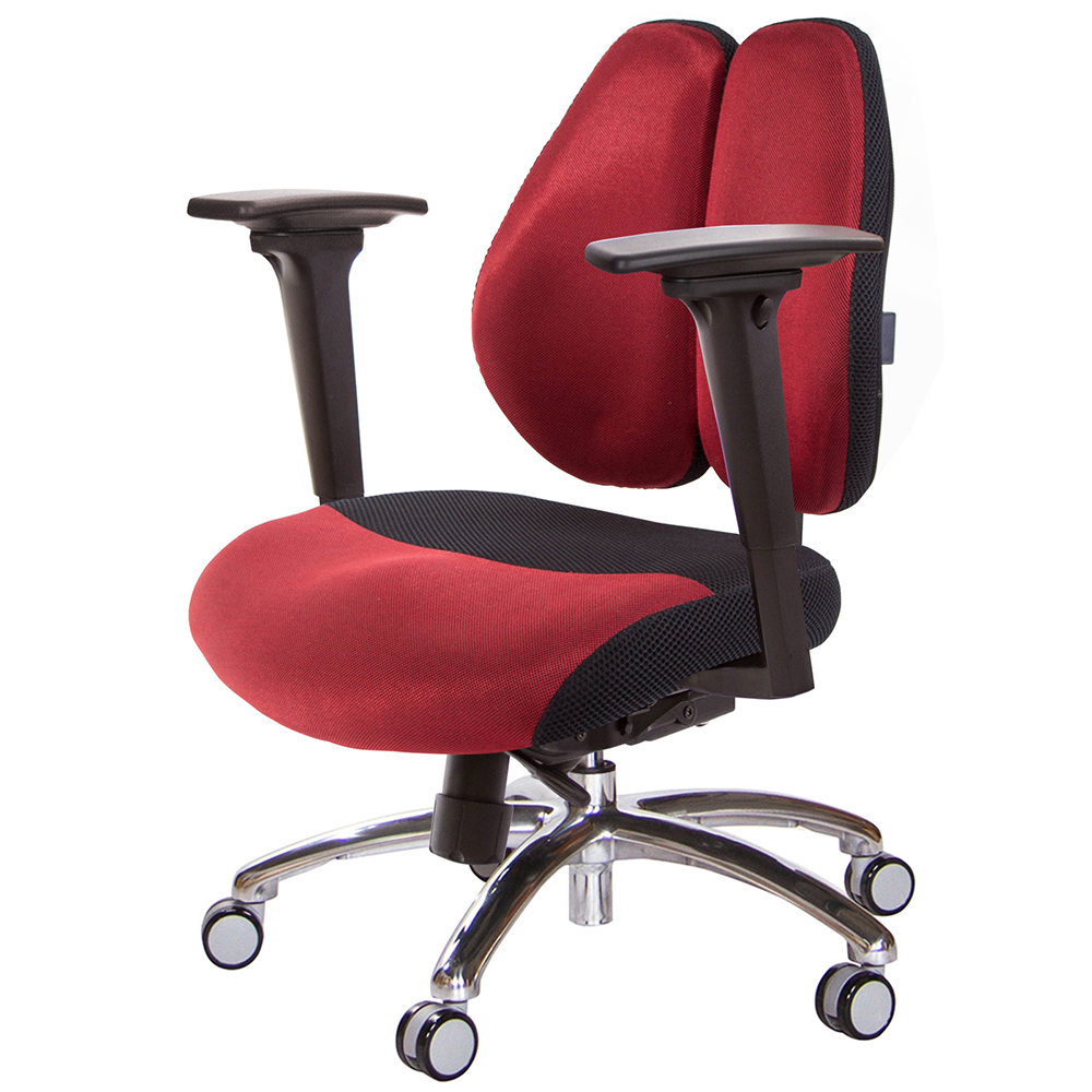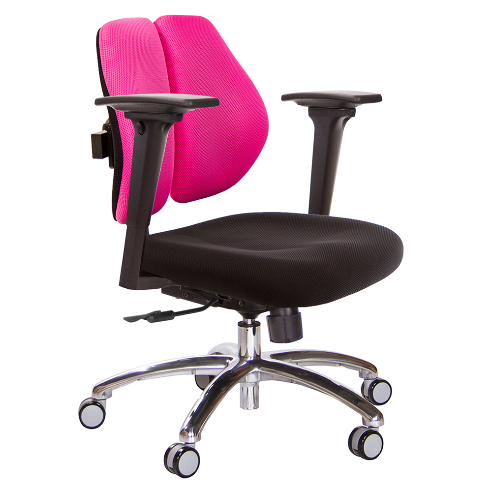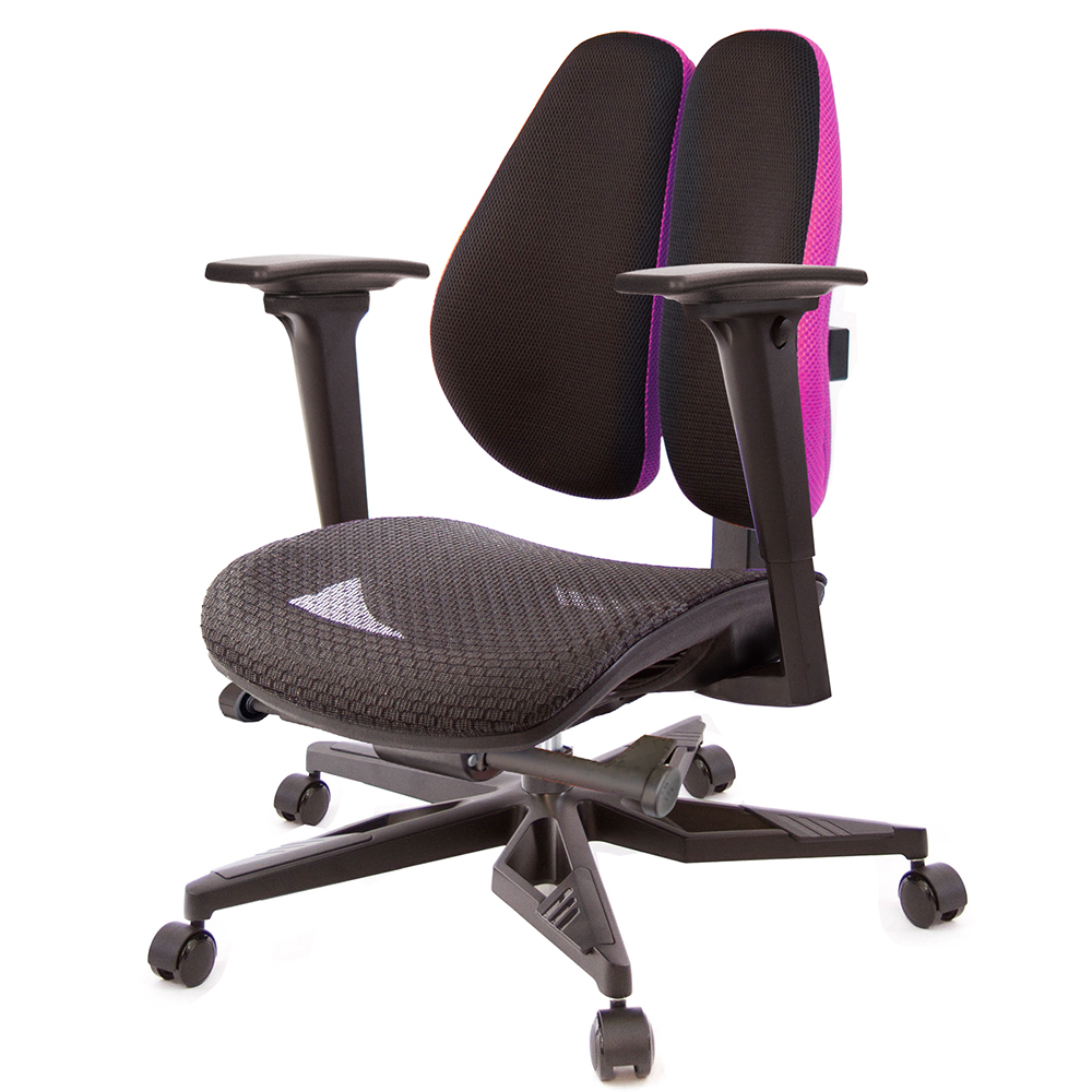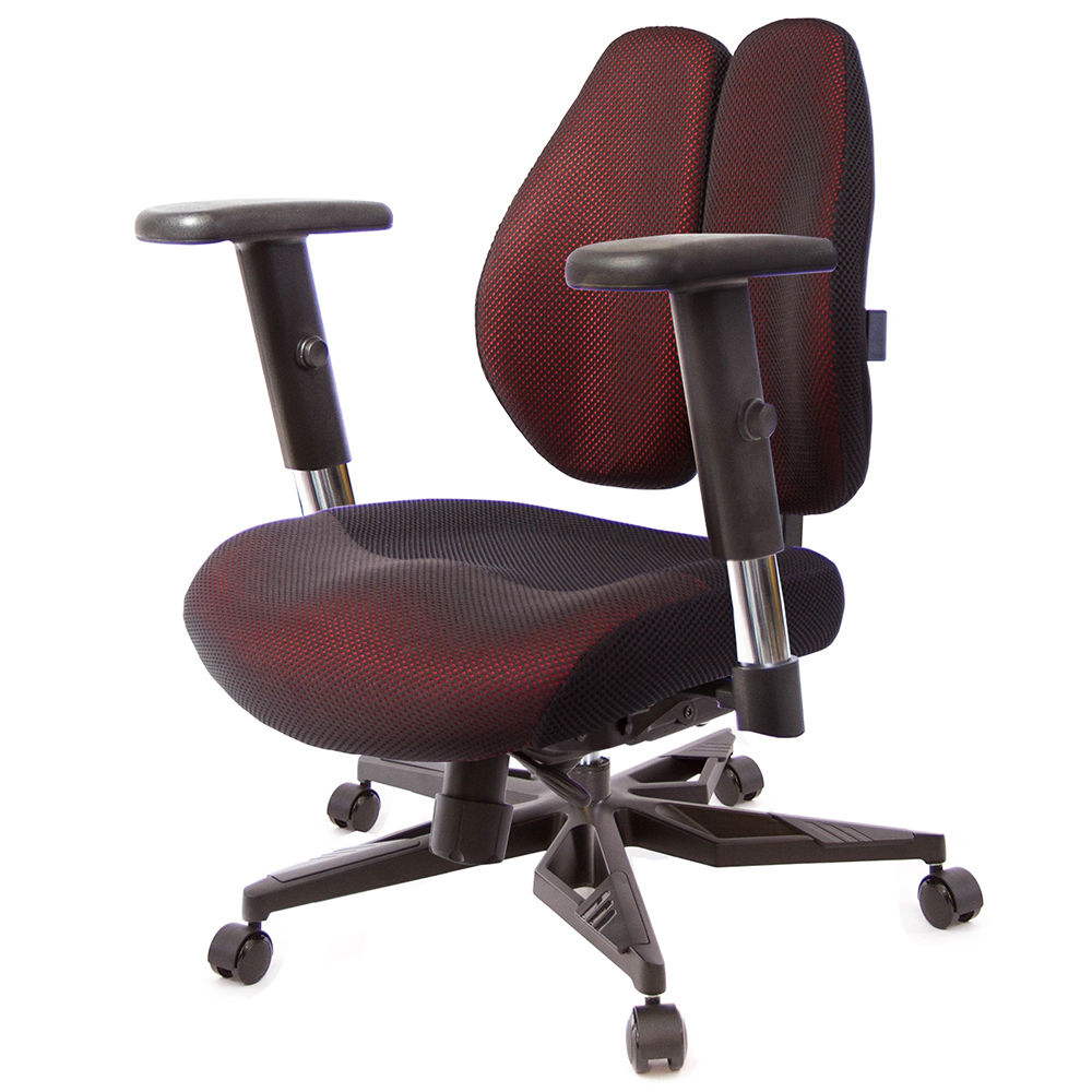 一般的電腦椅,實際上『椅背』大都不能支撐人體腰椎,緣自於人體本身的構造,人體的肩胛骨兩旁延伸至肩膀,其雙肩的壓力,會集中到腰椎中心處形成一個『倒三角的點』,如同一個箭頭向下將壓力壓迫到腰椎,無法讓脊椎肌肉正常釋放重力。 GXG Furniture開發出新式『智慧雙背椅』,提倡健康座、舒適生活,當您坐在一般椅子上,腰椎基本所承受的壓力,是人體自然站立時的140%,而使用『雙背智慧椅』,如同多了一雙手,完整托住您的背部,明顯比一般椅子減輕百分之五十的腰椎壓力,讓腰椎壓力降至75%,改善您長久以來的困擾怎麼坐,都痠痛的問題,能讓您舒適度明顯提升