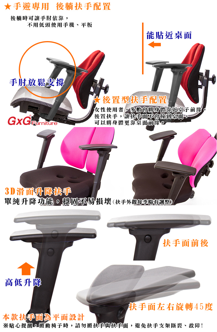 本款HR-809扶手, 後置扶手設計,針對大多數女性使用者,喜歡將身體靠近桌面,一般扶手為前置,較容易撞到桌面,後置扶手可以避免撞到桌面,將身體更貼近桌面前源,後躺時,能讓手肘輕鬆後靠,閱讀書籍、使用平板手機,更輕鬆舒適。
