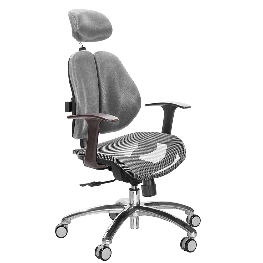TW-2806高背款雙背椅,本款使用中型灰網面座墊,適合身高160~185CM使用者,椅背採用人體工學設計,造型看似烏魚子、或是像兩個人體肺的型狀,這樣的設計,是讓我們在乘坐後靠時,能更貼合我們背部,緩和脊椎的重力,降低尾椎壓力,給長時間工作者一張,聰明、會改善坐姿習慣的智慧椅。