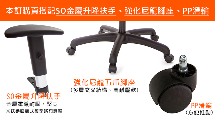 本訂購頁規格: SO金屬升降扶手、尼龍腳座、PP滑輪