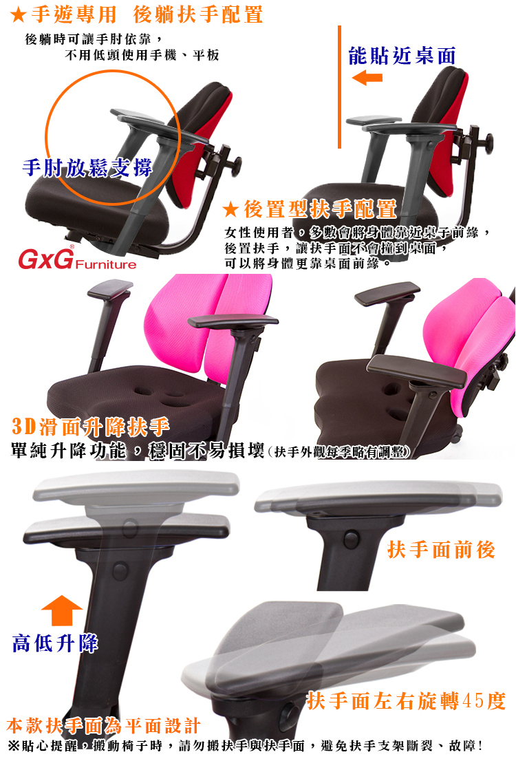 本款HR-809扶手, 後置扶手設計,針對大多數女性使用者,喜歡將身體靠近桌面,一般扶手為前置,較容易撞到桌面,後置扶手可以避免撞到桌面,將身體更貼近桌面前源,後躺時,能讓手肘輕鬆後靠,閱讀書籍、使用平板手機,更輕鬆舒適。