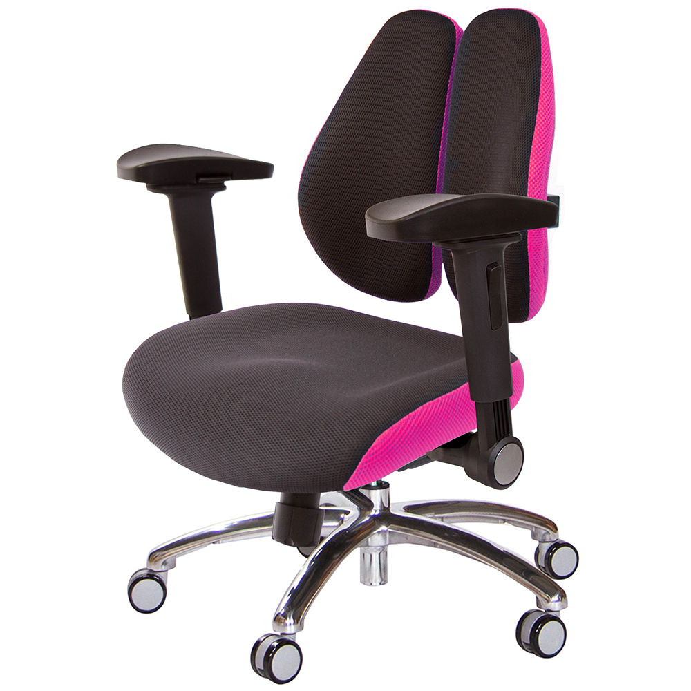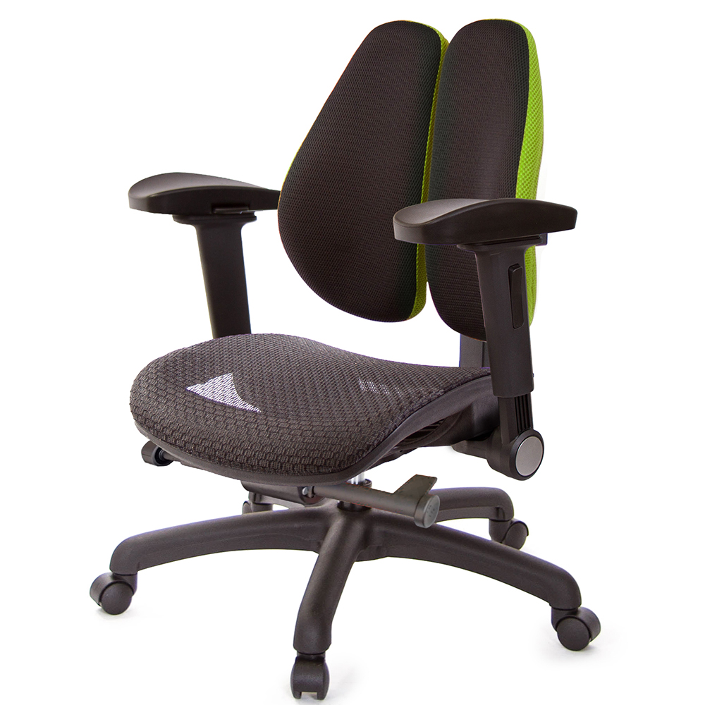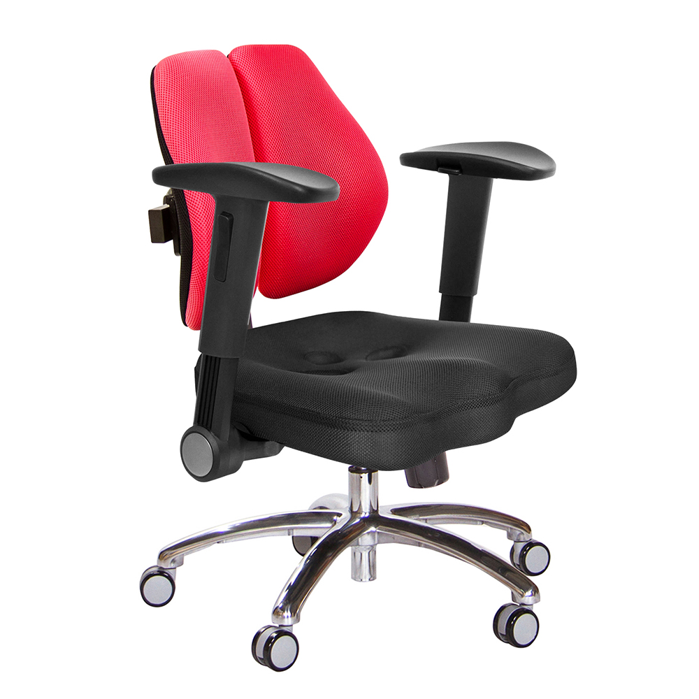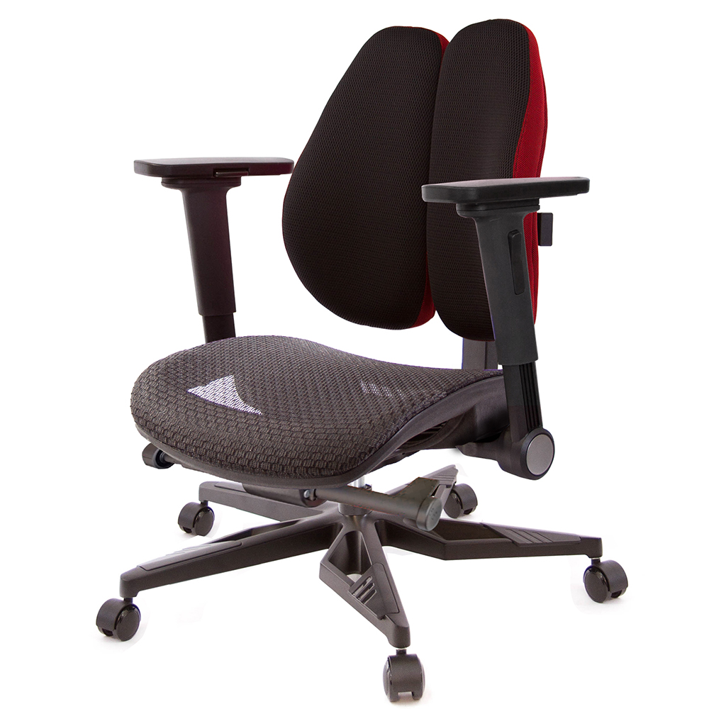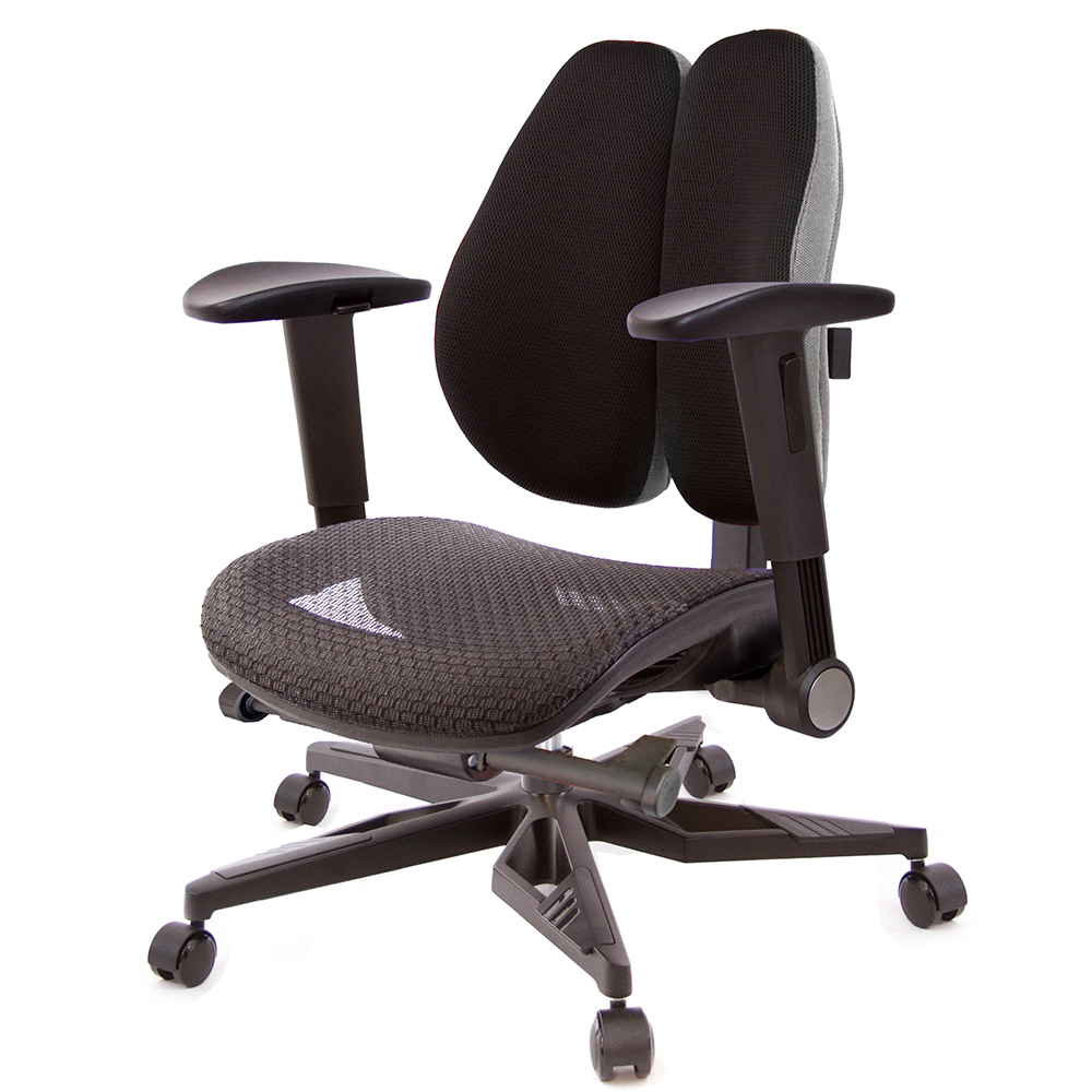 一般的電腦椅,實際上『椅背』大都不能支撐人體腰椎,緣自於人體本身的構造,人體的肩胛骨兩旁延伸至肩膀,其雙肩的壓力,會集中到腰椎中心處形成一個『倒三角的點』,如同一個箭頭向下將壓力壓迫到腰椎,無法讓脊椎肌肉正常釋放重力。 GXG Furniture開發出新式『智慧雙背椅』,提倡健康座、舒適生活,當您坐在一般椅子上,腰椎基本所承受的壓力,是人體自然站立時的140%,而使用『雙背智慧椅』,如同多了一雙手,完整托住您的背部,明顯比一般椅子減輕百分之五十的腰椎壓力,讓腰椎壓力降至75%,改善您長久以來的困擾怎麼坐,都痠痛的問題,能讓您舒適度明顯提升