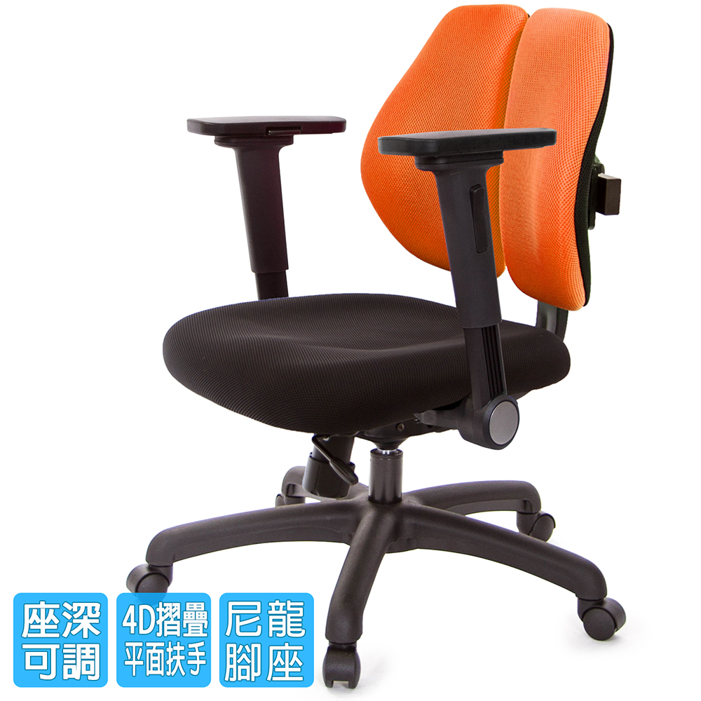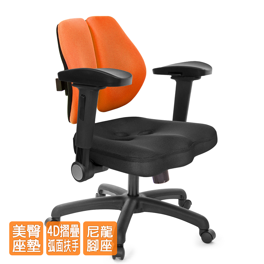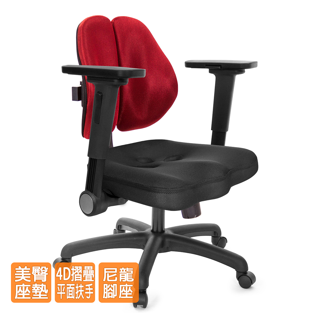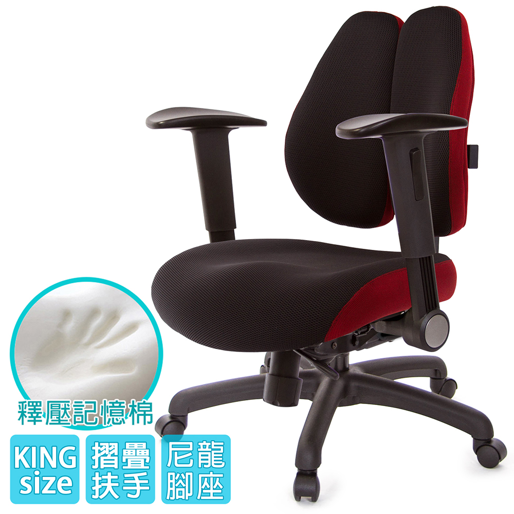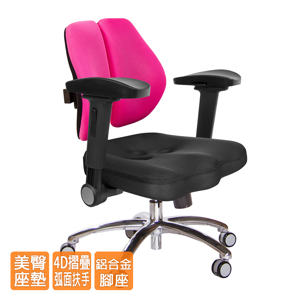 人體工學雙背設計,改善長時間座在椅子上,覺得腰部貼合度不足,有懸空或不夠沉穩的感覺,改良式的雙背背墊,除了完整包覆性外,更提供了『左右彈性』、『上下貼合』、『彈力緩衝』等特性,並有多國國際結構專利認證(台灣、德國、日本、美國、中國等),原廠專利、技術100% Made in Taiwan台灣製造。