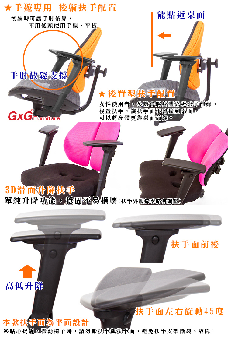本款HR-809扶手, 後置扶手設計,針對大多數女性使用者,喜歡將身體靠近桌面,一般扶手為前置,較容易撞到桌面,後置扶手可以避免撞到桌面,將身體更貼近桌面前源,後躺時,能讓手肘輕鬆後靠,閱讀書籍、使用平板手機,更輕鬆舒適。