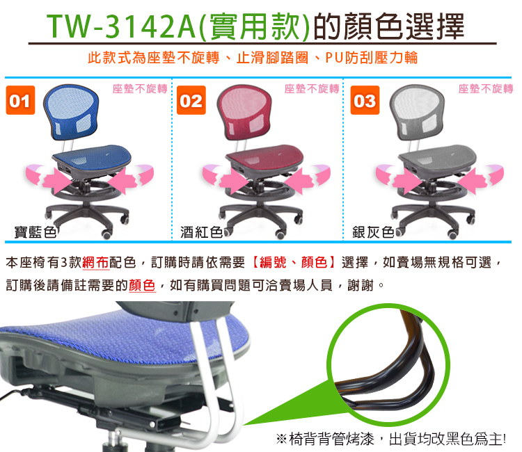 ※椅背鐵件烤漆,現出貨均改黑色為主。
