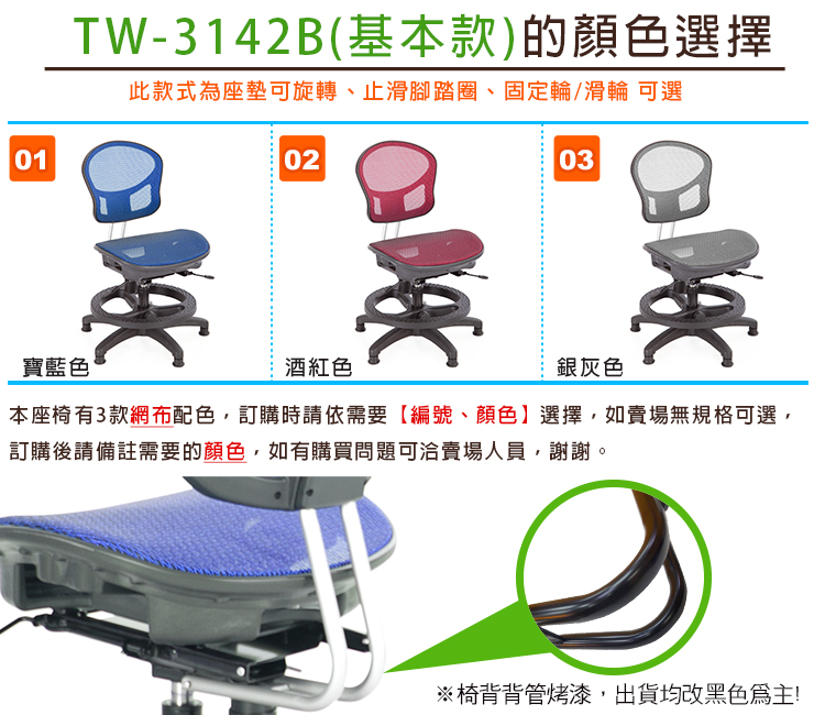 ※椅背鐵件烤漆,現出貨均改黑色為主。
