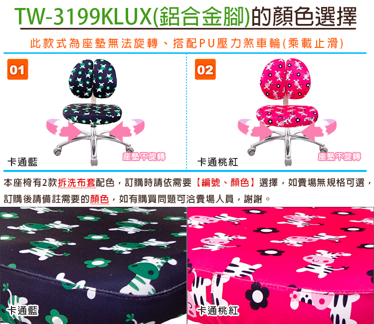 TW-3199KLUX 兒童雙背椅《鋁合金腳》 卡通桃紅色 示意圖