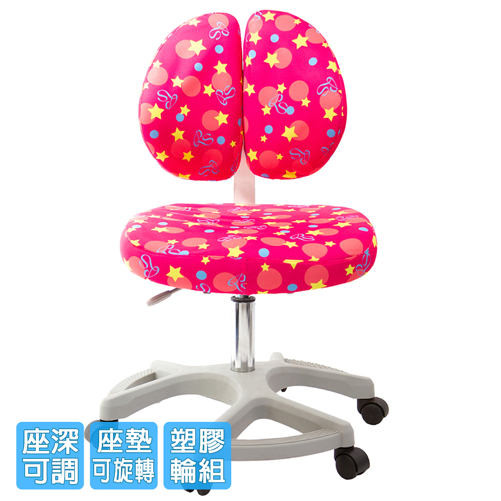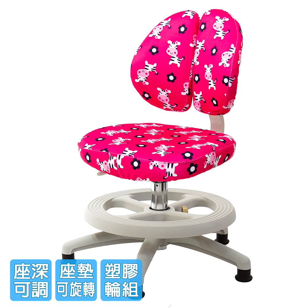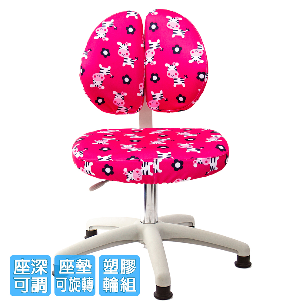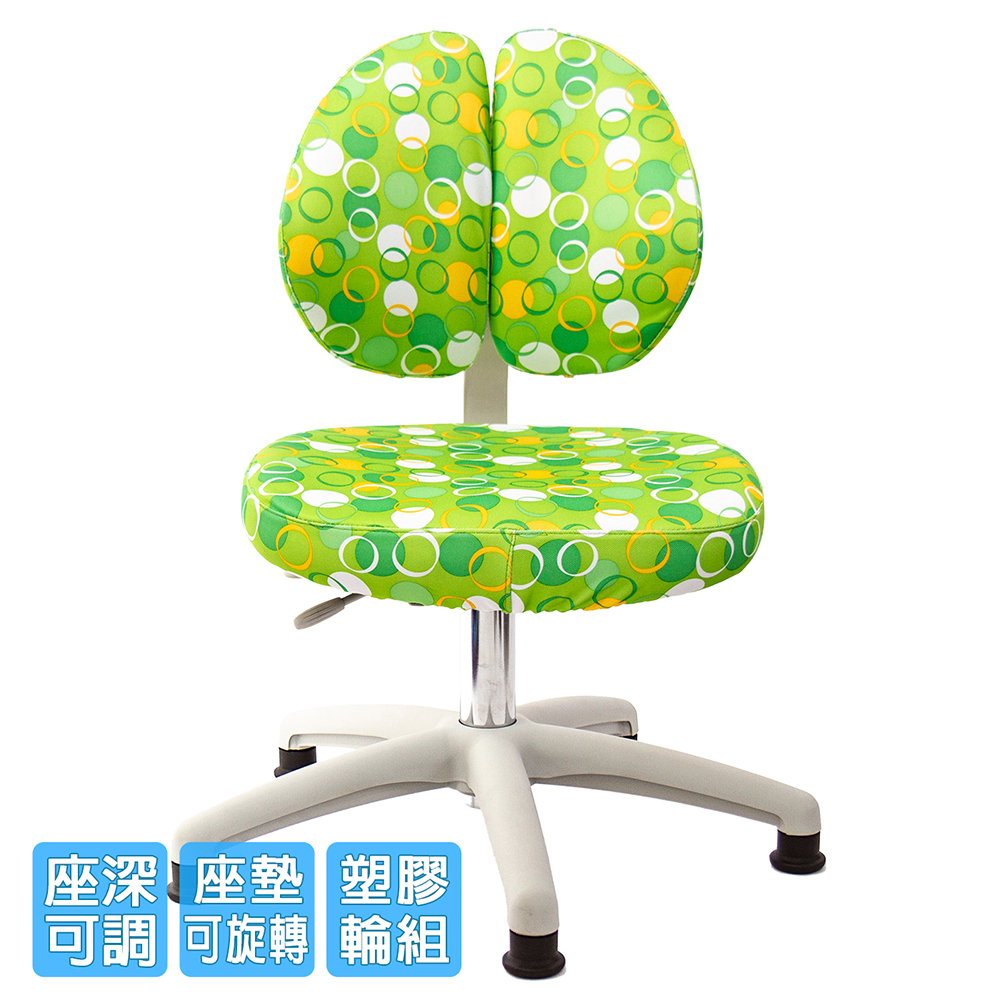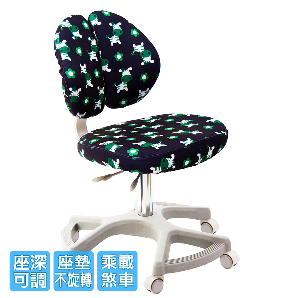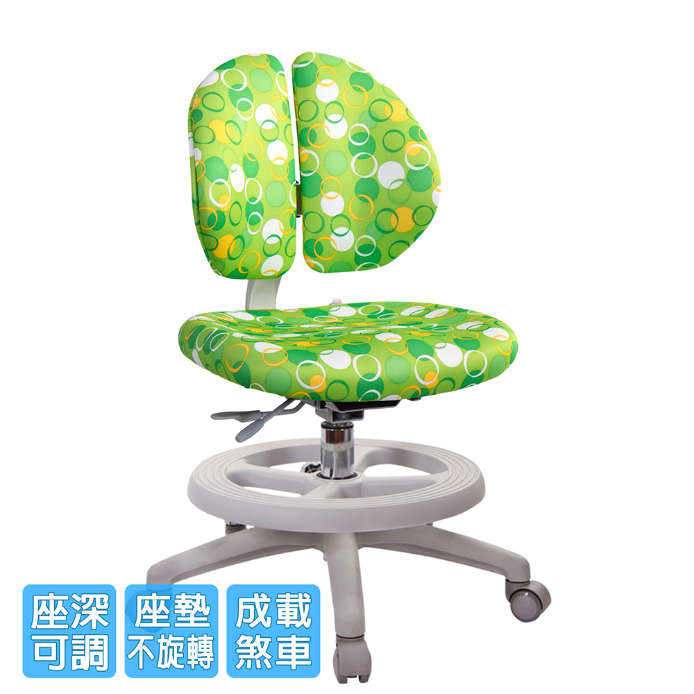椅背可調整上下高低,配合孩童身高調整,椅背固定90度角不晃動(不可後躺),讓孩童安全使用、專心學習。