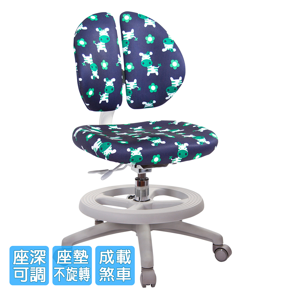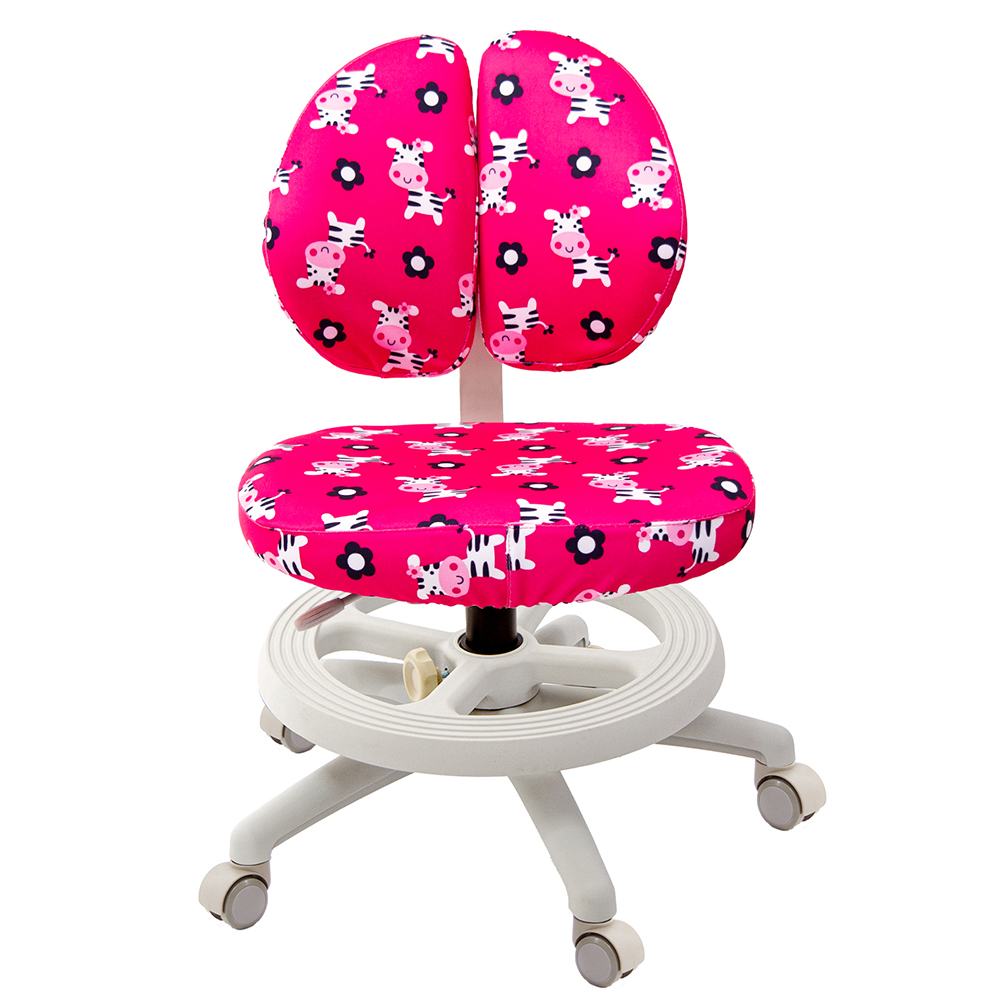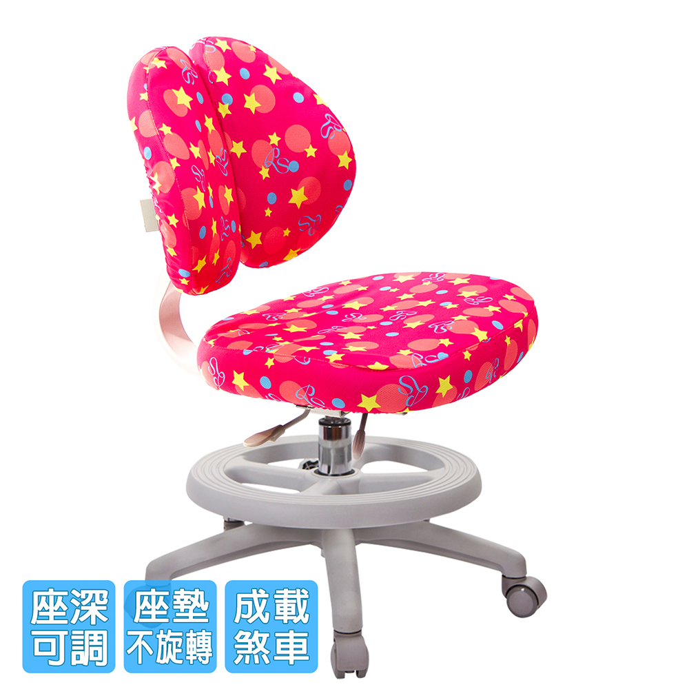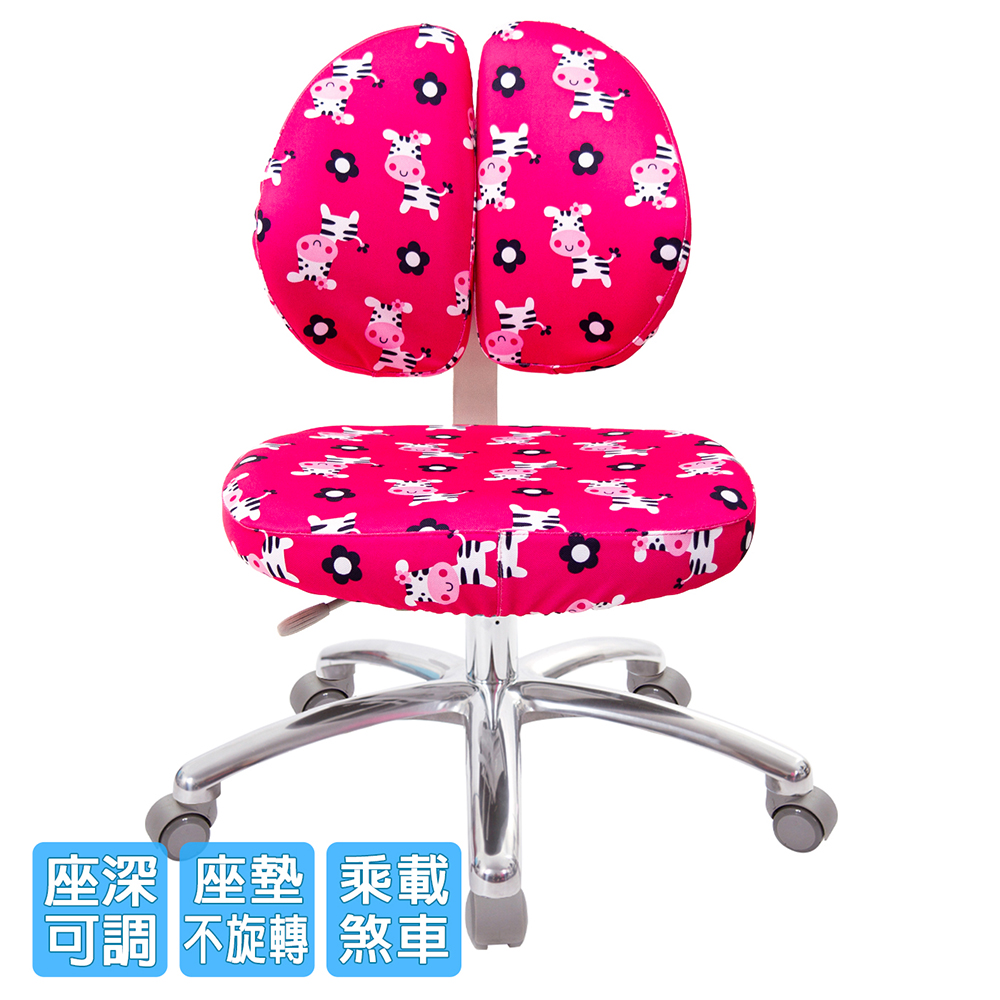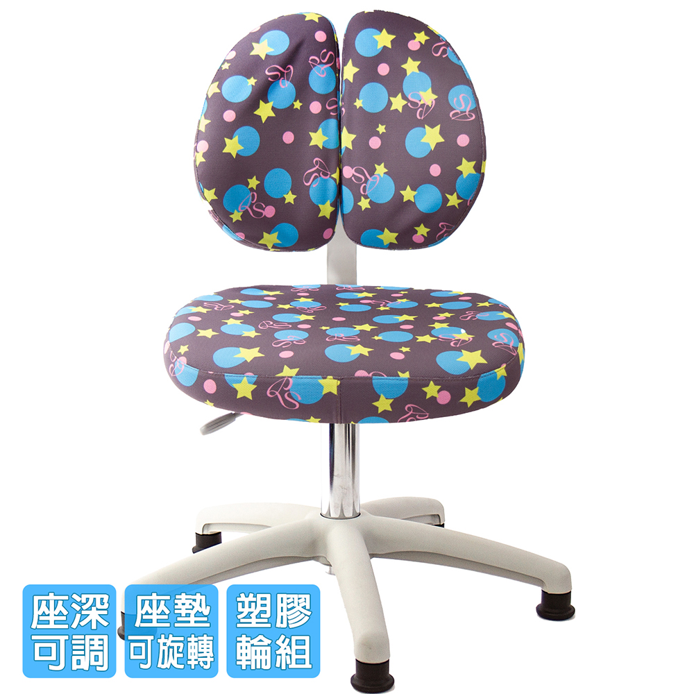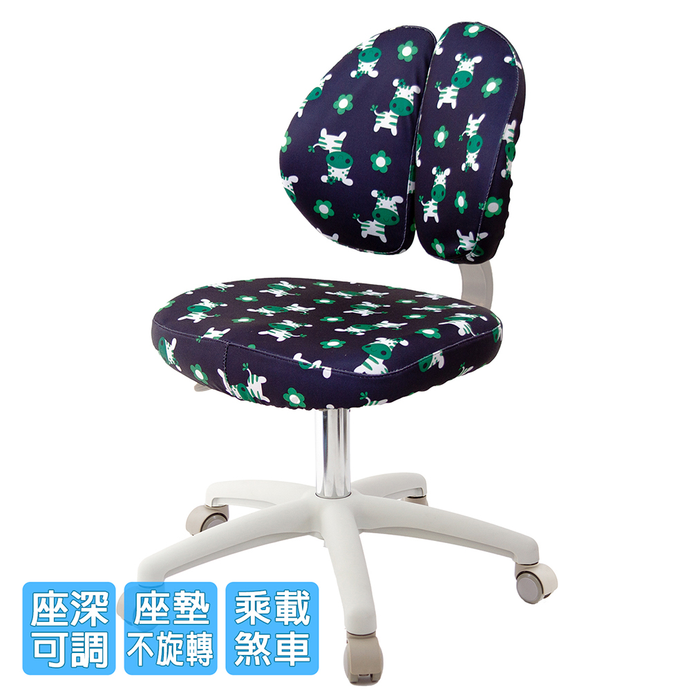 椅背可調整上下高低,配合孩童身高調整,椅背固定90度角不晃動(不可後躺),讓孩童安全使用、專心學習。