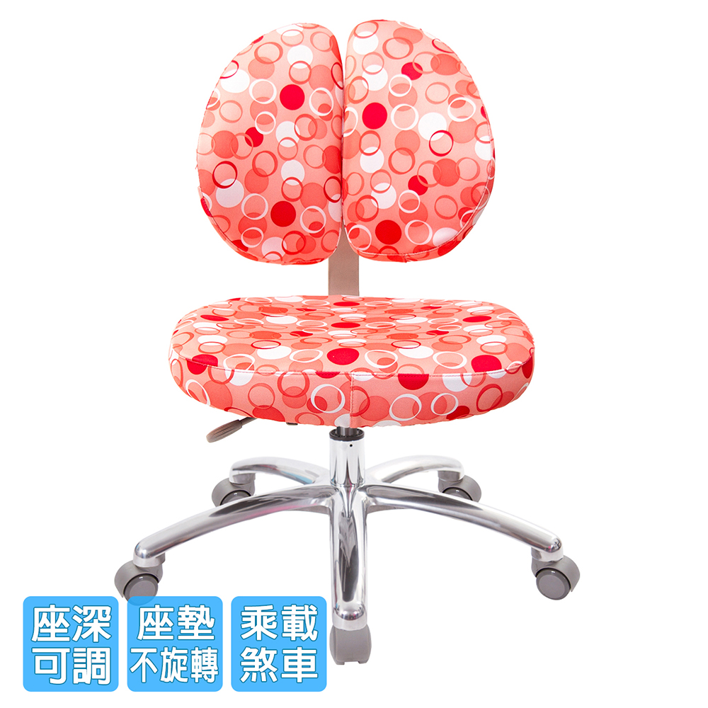 兒童雙背椅,椅背採用人體工學設計,造型看似烏魚子、或是像兩個肺的型狀,這樣的設計,是讓我們在乘坐後靠時,能更貼合我們背部,緩和脊椎的重力,降低尾椎壓力,更有高、矮座可選,讓孩童自然踏地,一張聰明、會改善坐姿習慣的兒童成長智慧椅。