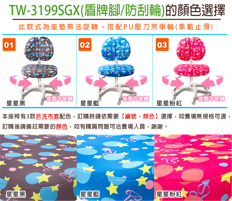 TW-3199SGX 兒童雙背椅《盾牌腳/防刮輪》 星星藍色 示意圖