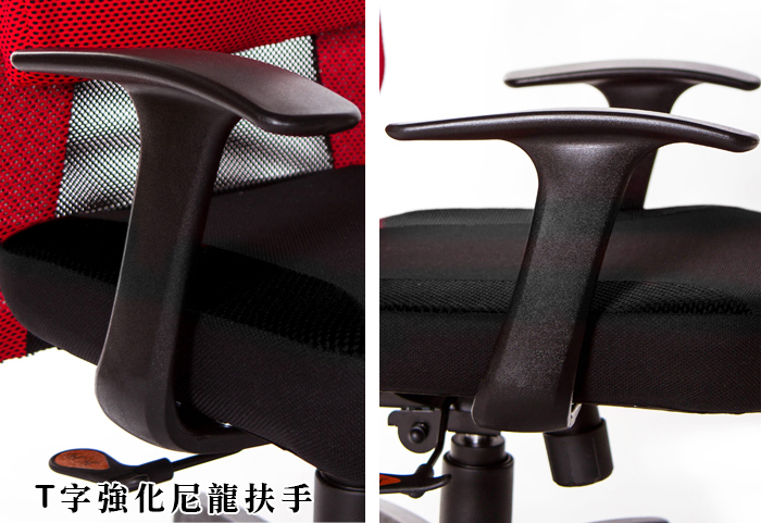 T字造型扶手,為最簡易實用的扶手,讓您休息好靠手,或是幫助移動椅子也很方便,扶手採用尼龍PP成行射出,安全、不易斷裂,符合歐美國際標準,可配合辦公環境需求,將扶手拆除也相當簡易。