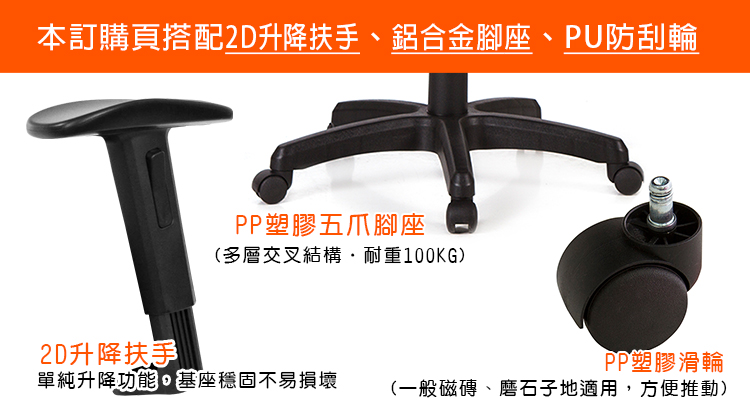 本訂購頁規格:2D升降扶手、強化PP塑膠座、PP滑輪