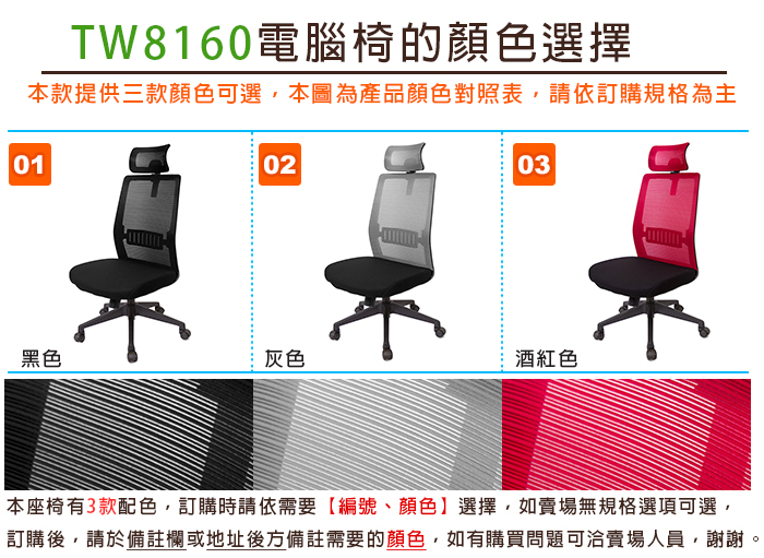 ※小提醒:TW-8160系列電腦椅,適合身高170CM以上的使用者(身高較嬌小,後頸部會無法靠到頭枕唷!訂購前可先洽詢賣場客服)。