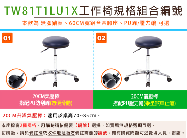 ※本款TW--81T1 圓凳工作椅,提供多種款式可選,可以依據需求購買