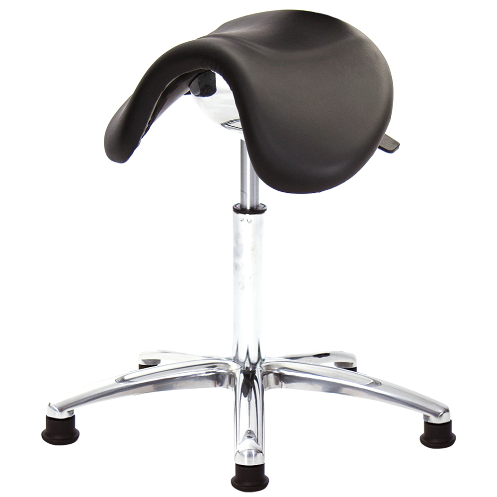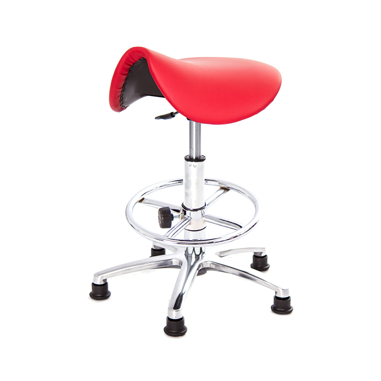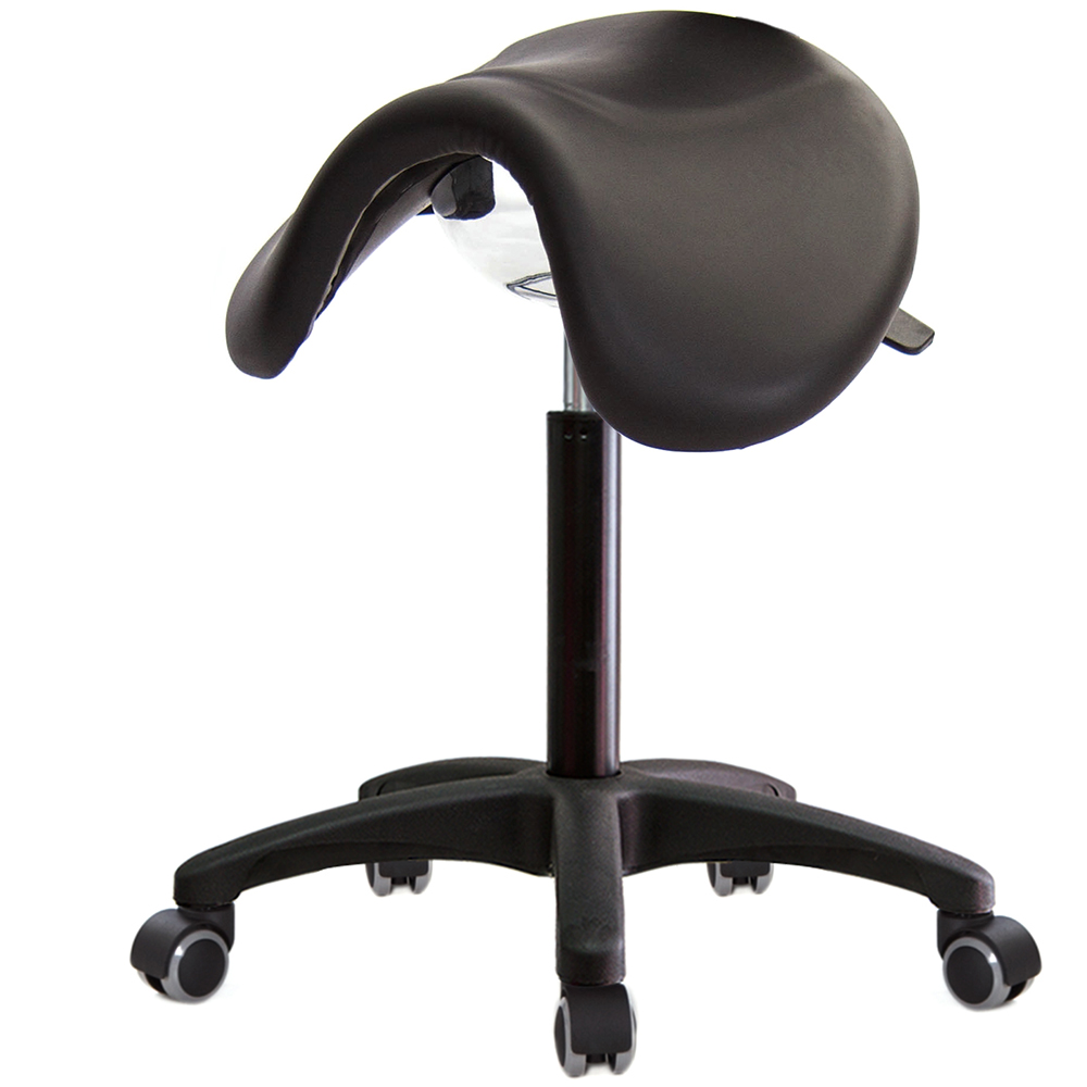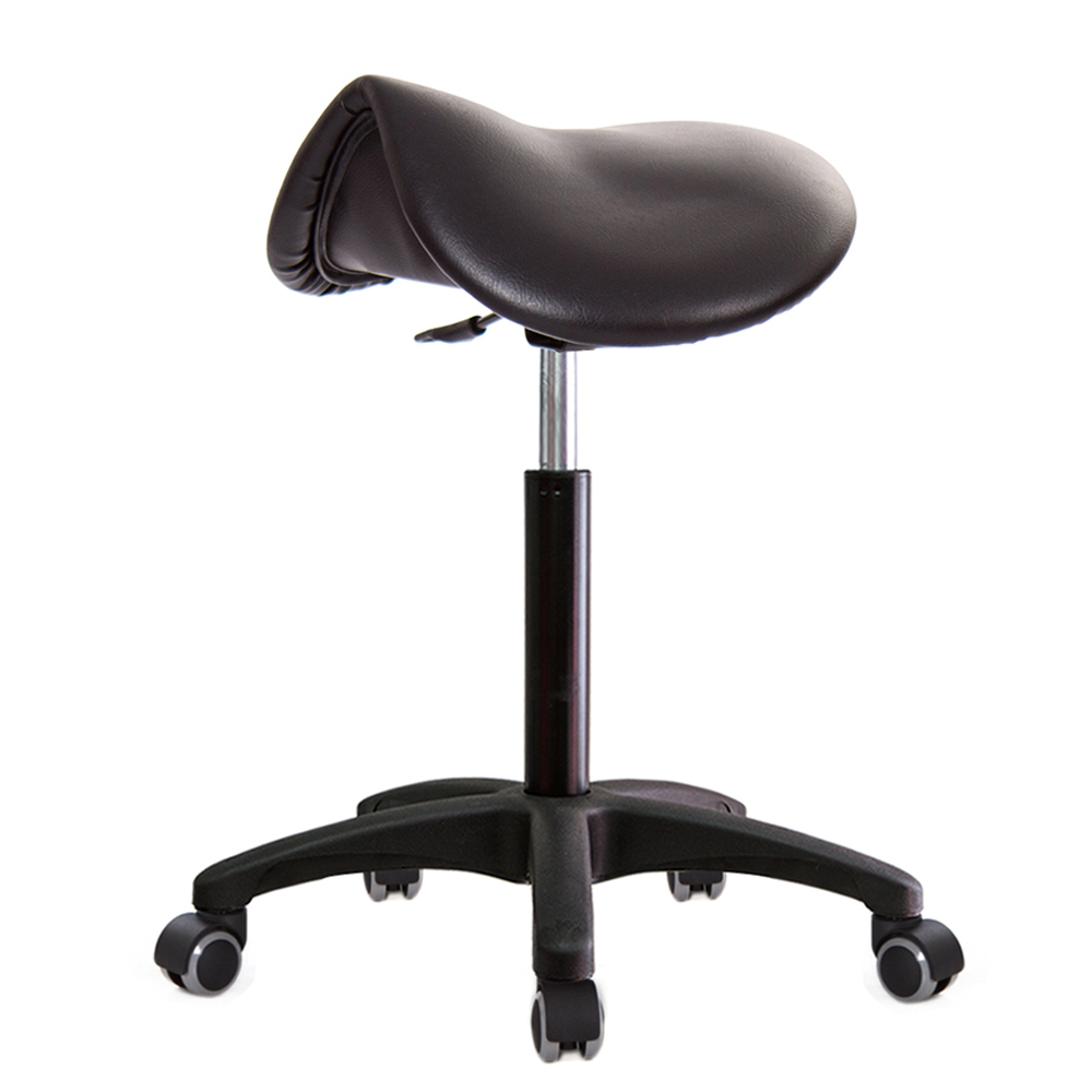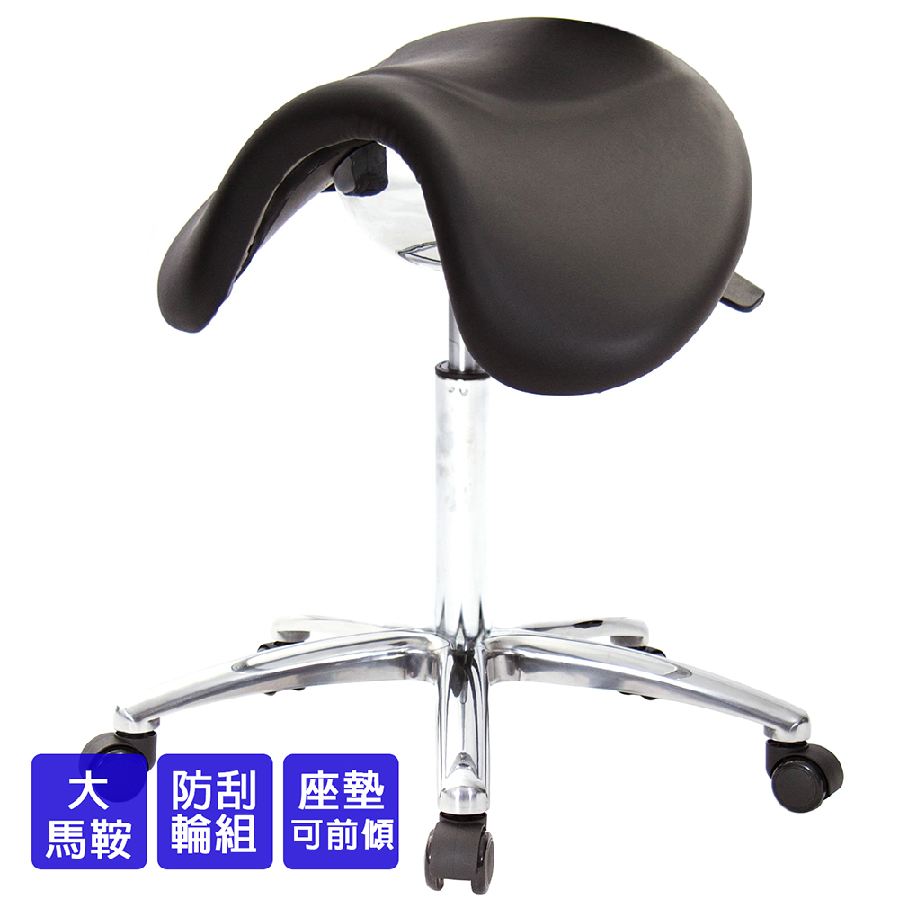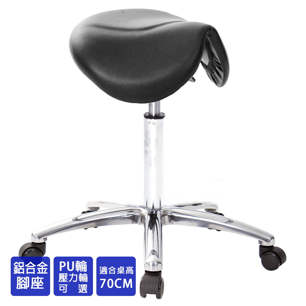 仿馬鞍造型坐墊,能大大降低久座時,臀部造成壓力,當全身重量集中在人體臀部、尾椎,一般的平面工作椅無法將壓力釋放,會累積在臀部,透過馬鞍椅工作,雙腿較集中於人體中心下盤,將累積的重量,透過雙腿平均釋放,有效減輕脊椎與臀部壓力。