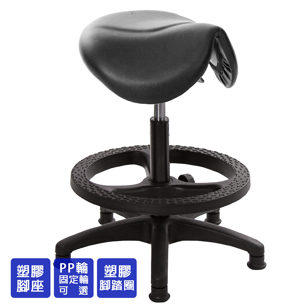 產品示意圖:TW-81T9EXK 塑膠腳座++腳踏圈+防刮輪 馬鞍工作椅