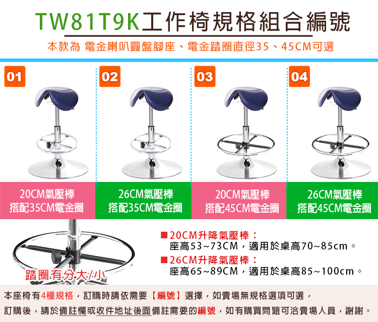 ※本款TW-81T9 馬鞍工作椅,提供多款式可選,可以依據需求購買