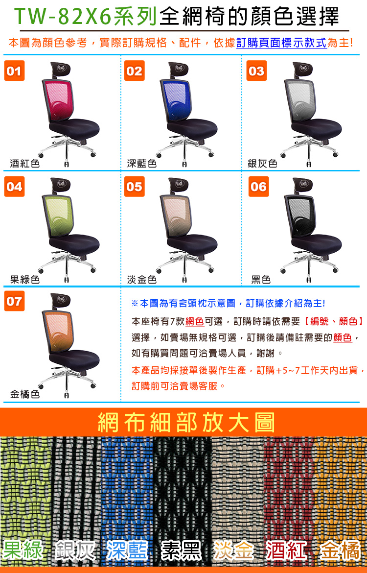 TW-82X6 高背半網電腦椅,椅背採用台灣製造SGS認證特網,使用尼龍纖維絲,不吸汗水、好清潔;配上重量級大座墊,給你滿滿大平台的乘坐空間。