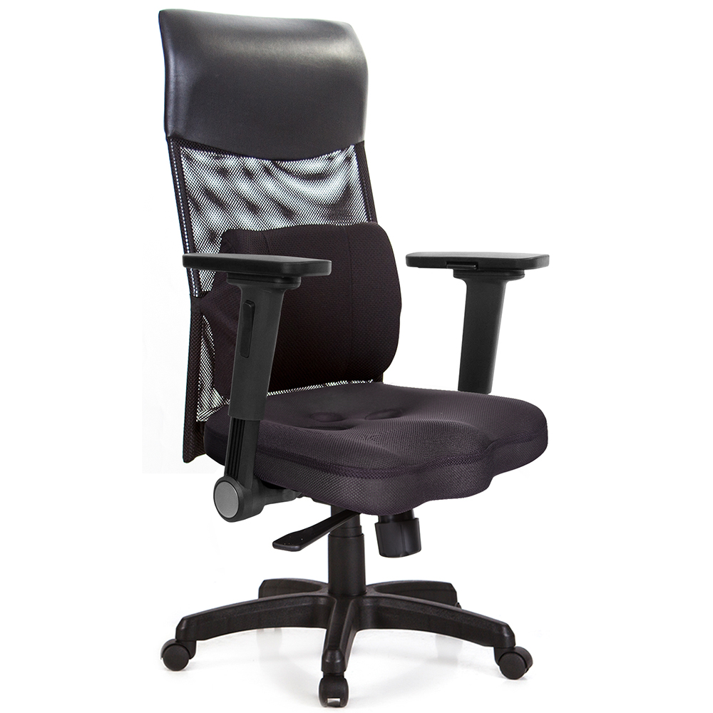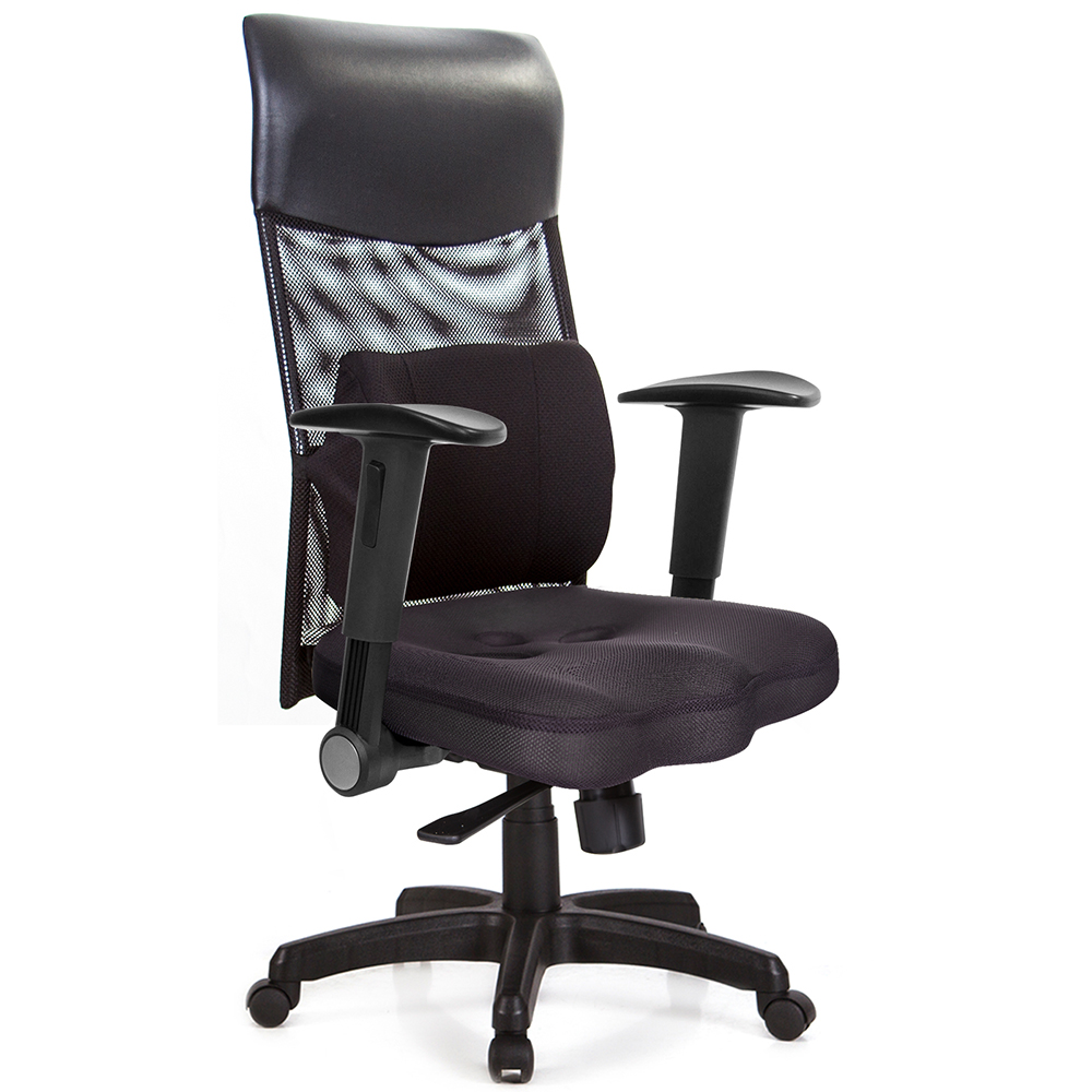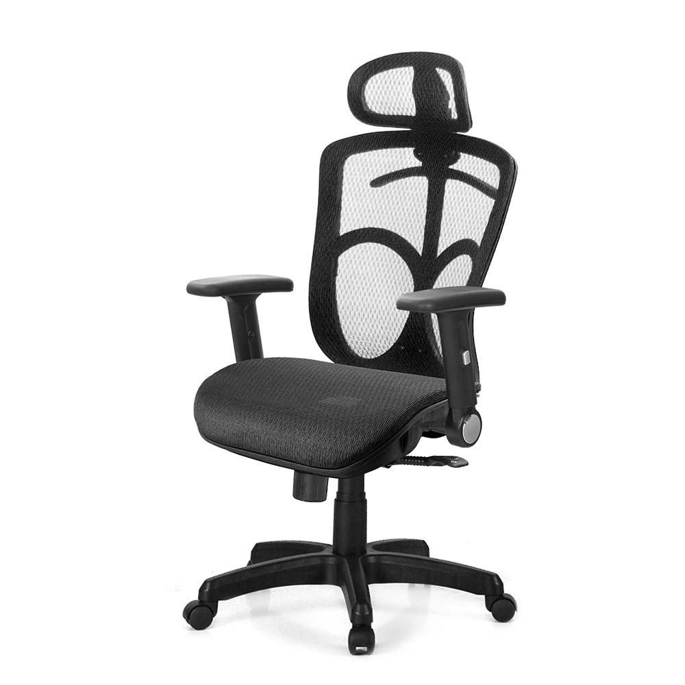 覺得傳統泡棉椅背,太過厚重、悶熱嗎!?本款椅背材採用透氣網布材質,長時間背靠時不悶熱、透氣性佳,椅背造型採ㄑ型曲面設計,不用特別加腰枕,也能讓您背部更加服貼椅背。