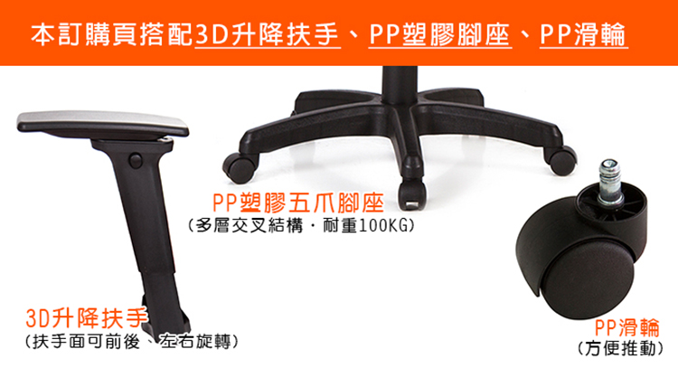 本訂購頁規格:3D升降扶手、PP塑膠腳座、PP滑輪