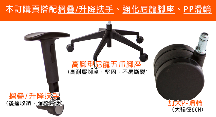 本訂購頁規格:摺疊/升降扶手、高尼龍腳座、PP滑輪