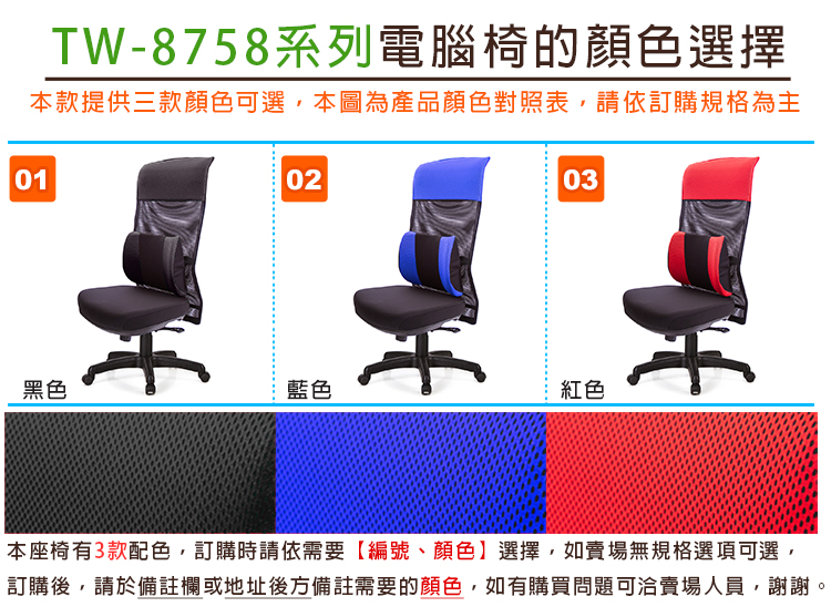 高背電腦椅 TW-8758EA1 (紅色示意照)