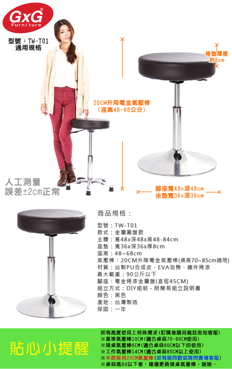 GXG 圓凳款 工作椅 (金屬圓盤款) 型號TW-T01