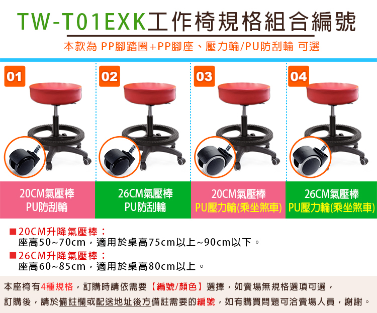 GXG 圓凳款 工作椅 (塑膠踏圈+防刮輪) 型號T01EXK