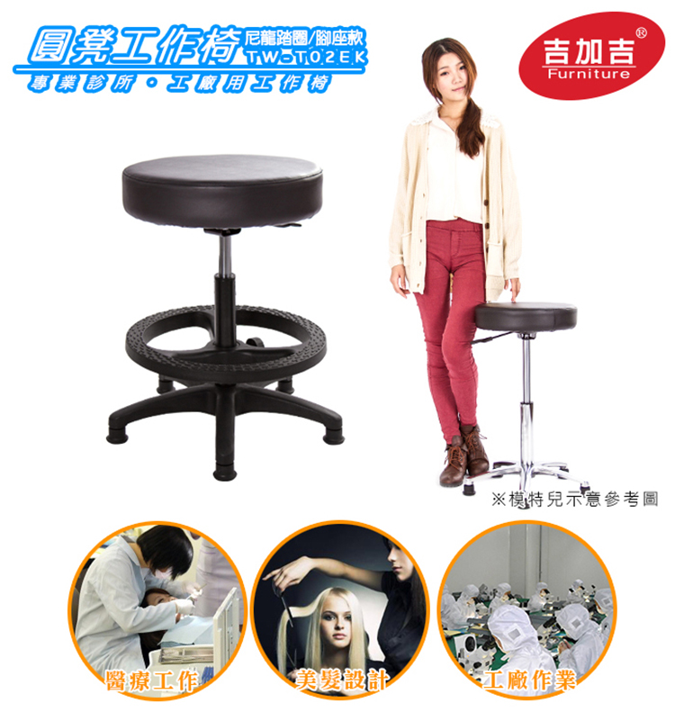 TW-T01圓凳工作椅,為工廠、診所使用,方便長時間工作作業使用,或詢問門診病患,功能單純方便,功能單純方便,簡約質感。