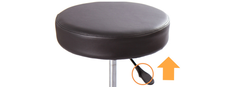 座椅高度︰調整高度時,人請先離開座墊,在將拉桿拉起,即可將座墊昇起,若需調降高度,人則需坐在座墊上,在將拉桿拉起,透過身體重量,座面高度即可下降。