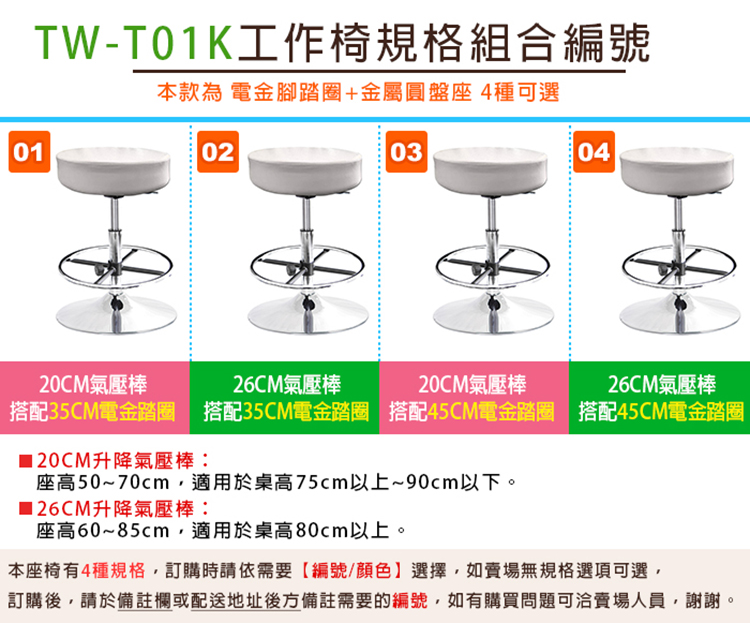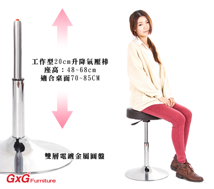 GXG 圓凳款 工作椅 (金屬圓盤+踏圈款) 型號TW-T01K
