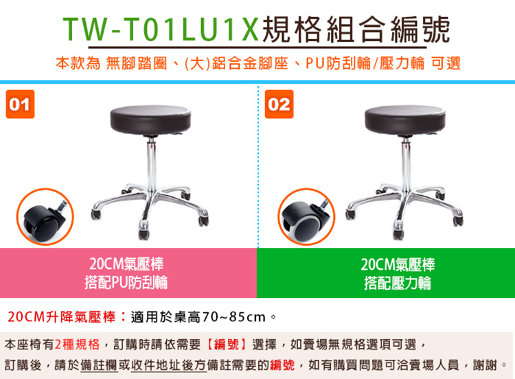 本款使用工作型氣壓棒,20CM升降氣壓棒,使用一般桌面70-85CM,針對製造業、加工廠業者設計, 且使用台灣工廠製造,氣密度好,不易漏氣損壞,或發生氣爆的危險,安全無虞,可放心使用。